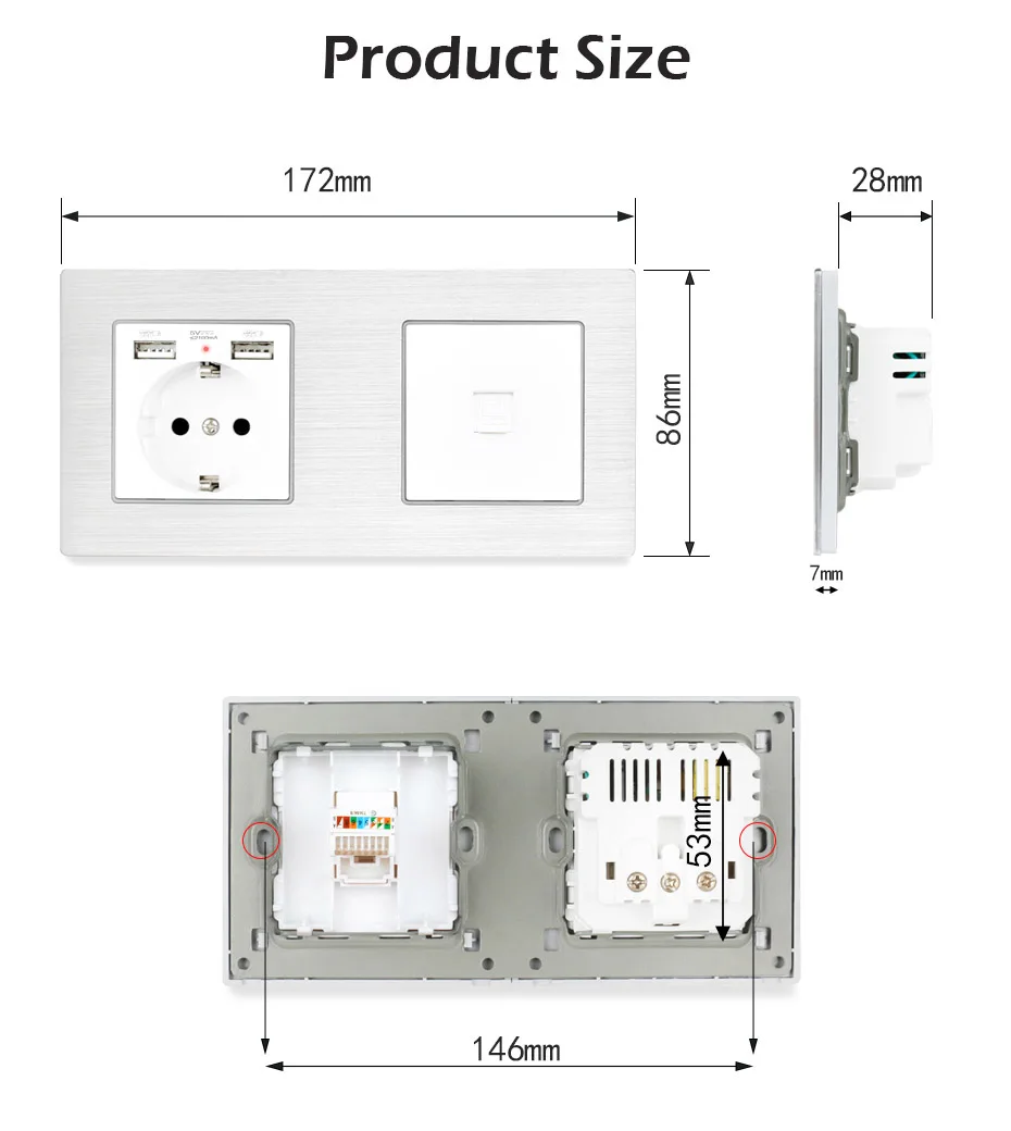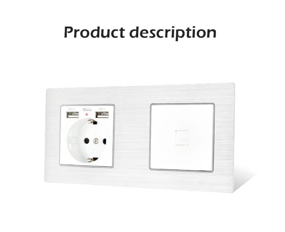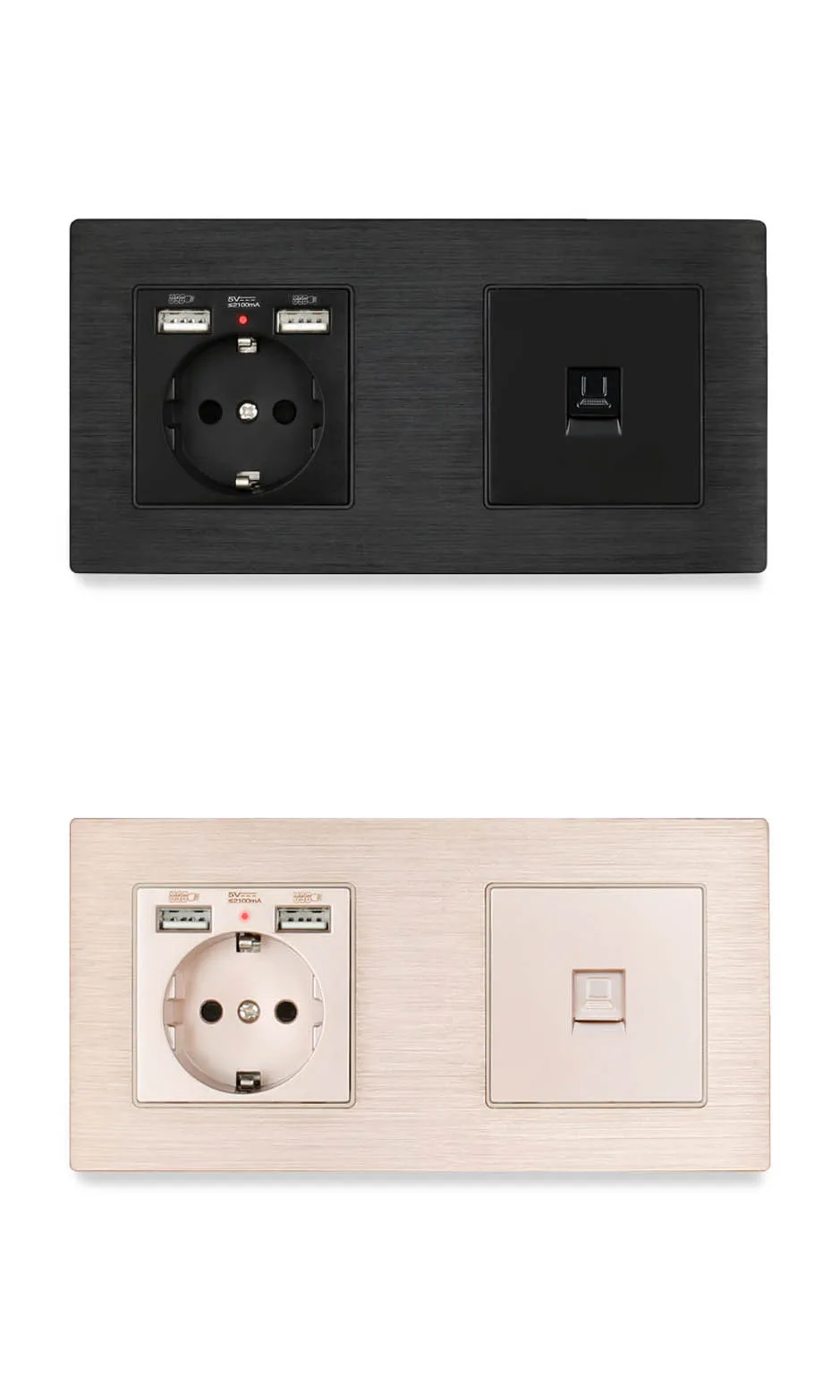 Esooli ЕС стандартная панель розетка с двойной USB розеткой + 1 банда RJ45 Интернет-разъем розетка компьютера Золотой Алюминиевый Металл