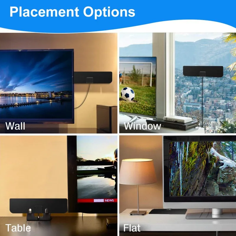 Our smart TV antenna adopt upgraded 2019 Amplifier Signal Booster with built-in Smart IC Chip Next generation and Crystal Clear Filter Technology to picks up signals within 80+ miles range.