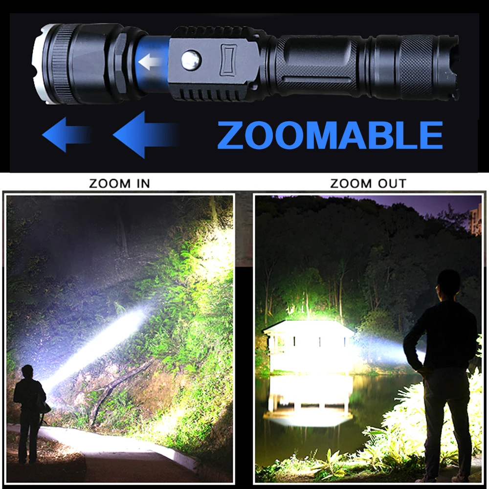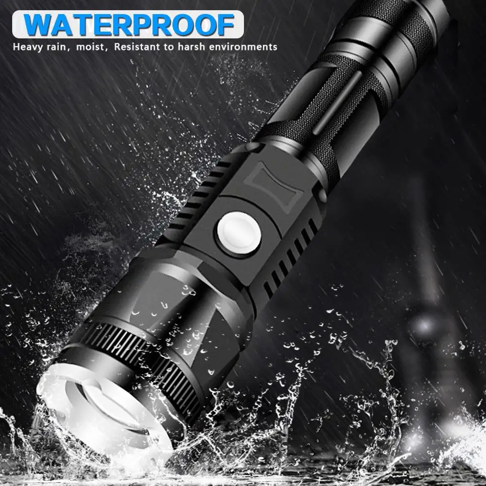 Самый мощный светодиодный фонарик T6, тактический зум-фонарь, водонепроницаемый, постоянный ток, фонарь с зарядкой, аккумулятор 18650, лучше всего подходит для освещения кемпинга, Z90