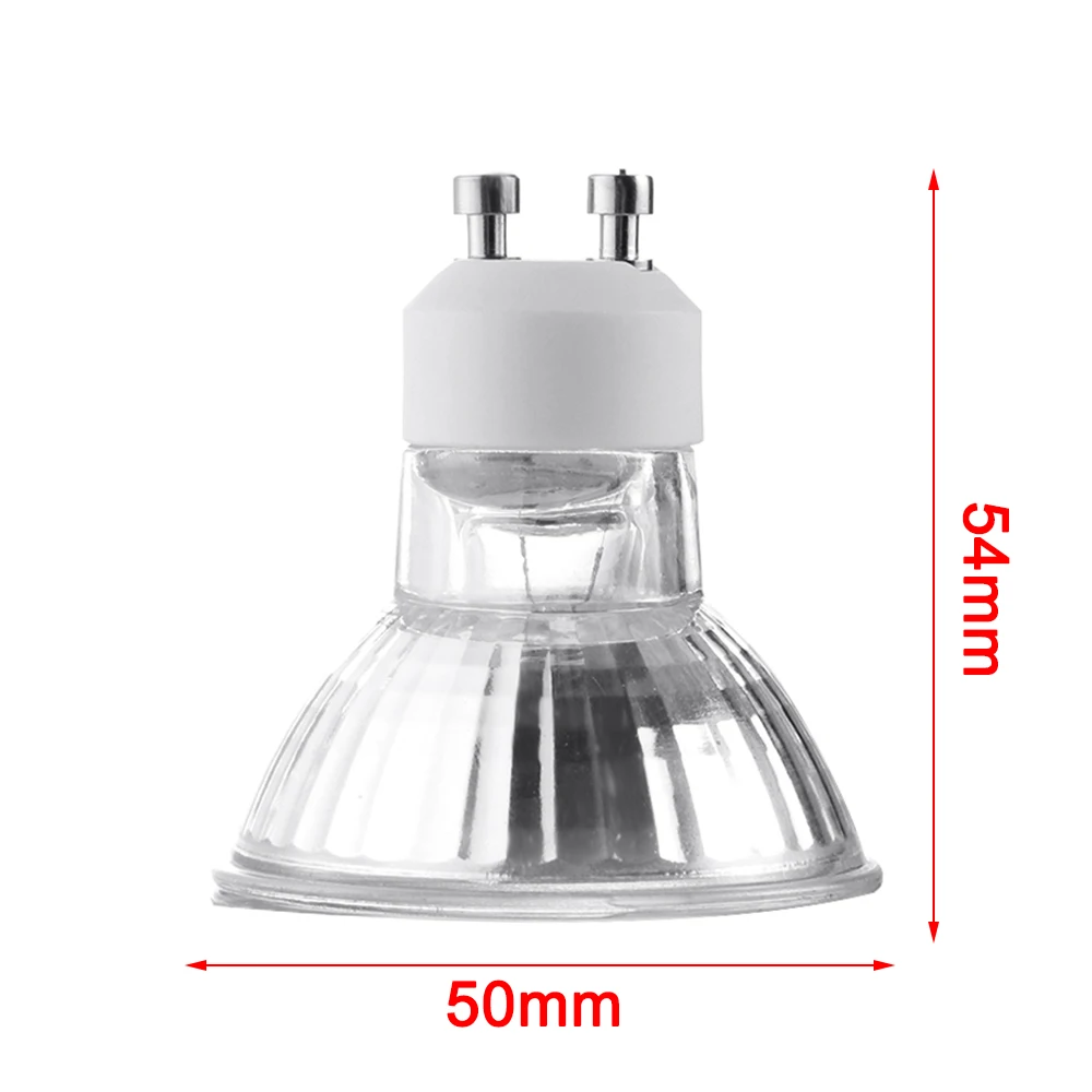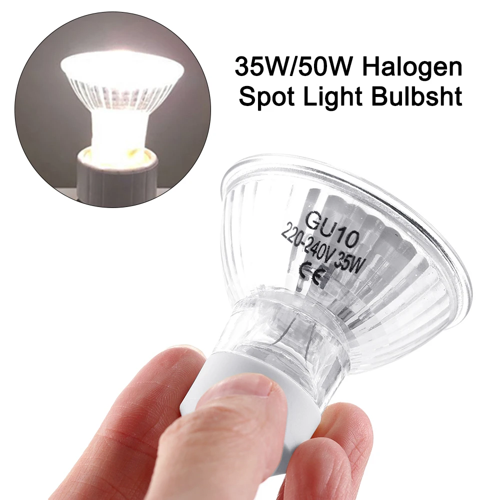 Цвет: теплый белый Диаметр: 50 мм Длина (с булавками): 54 мм Напряжение: 220-240 В Угол луча: 38 ° Отделка: Стекло крышка Мощность: 35 Вт или 50 Вт Продолжительность жизни: 2500 часов Посылка включает в себя: 1 галогенный светильник