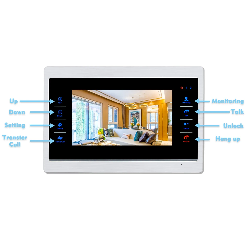 Умная Система видеодомофона, когда Посетитель нажимает кнопку на дверном звонке камеры, внутренний монитор будет звонить просто нажмите кнопку разблокировки и приветствуем ваших посетителей. Поддерживает двустороннюю связь между внутренним монитором и камерой дверного звонка, все могут контролироваться непосредственно с внутреннего монитора для еще большей безопасности и удобства