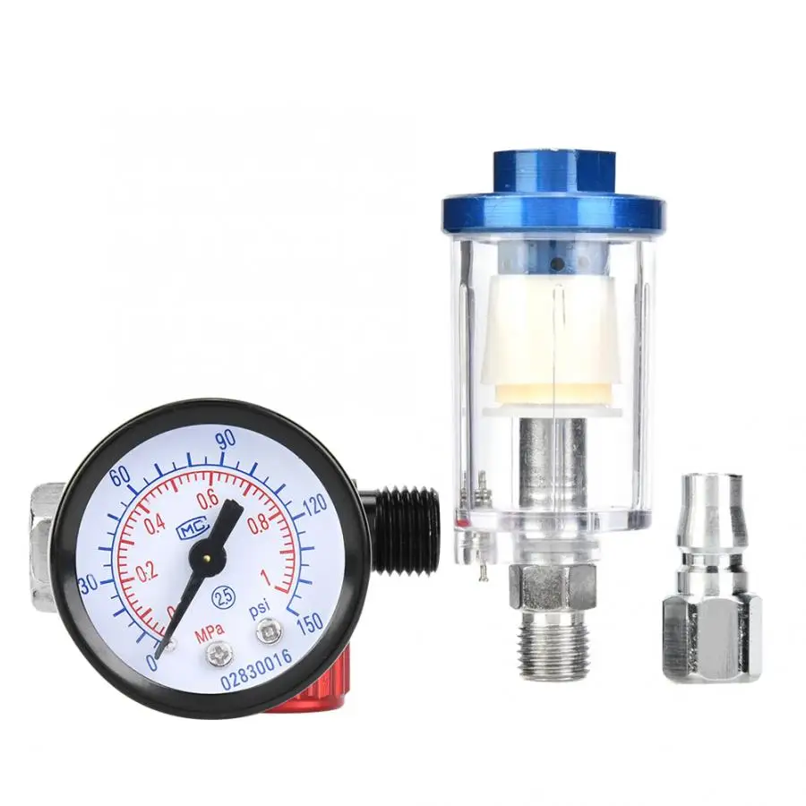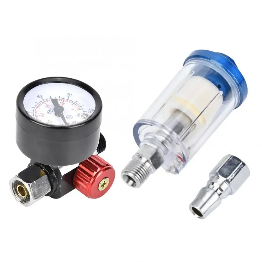 1/4in Air Inlet Pressure Regulator In-Line Water Oil Trap Filter Separator Spray Gun Tool