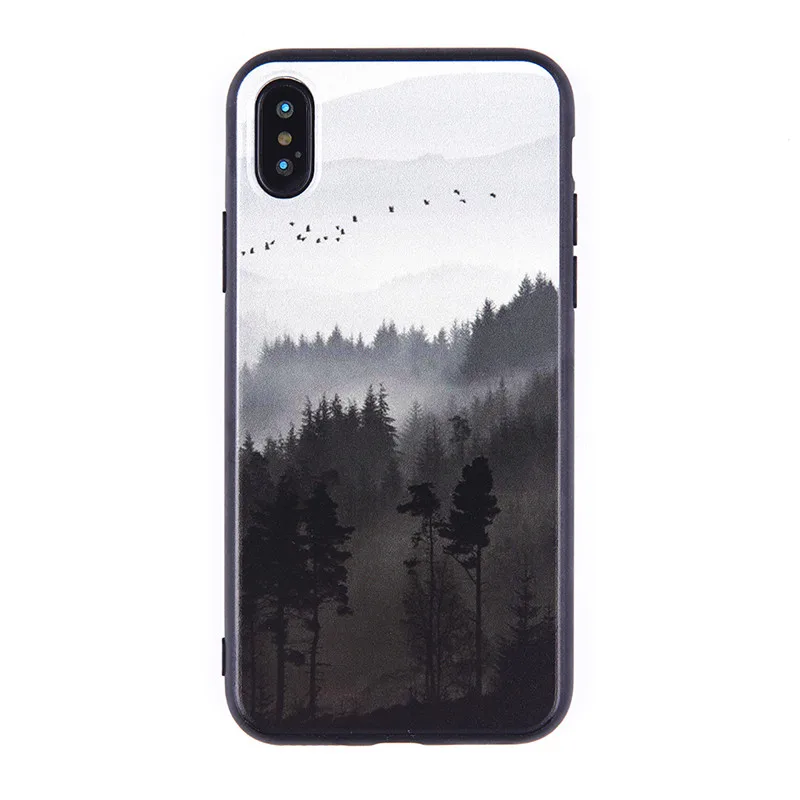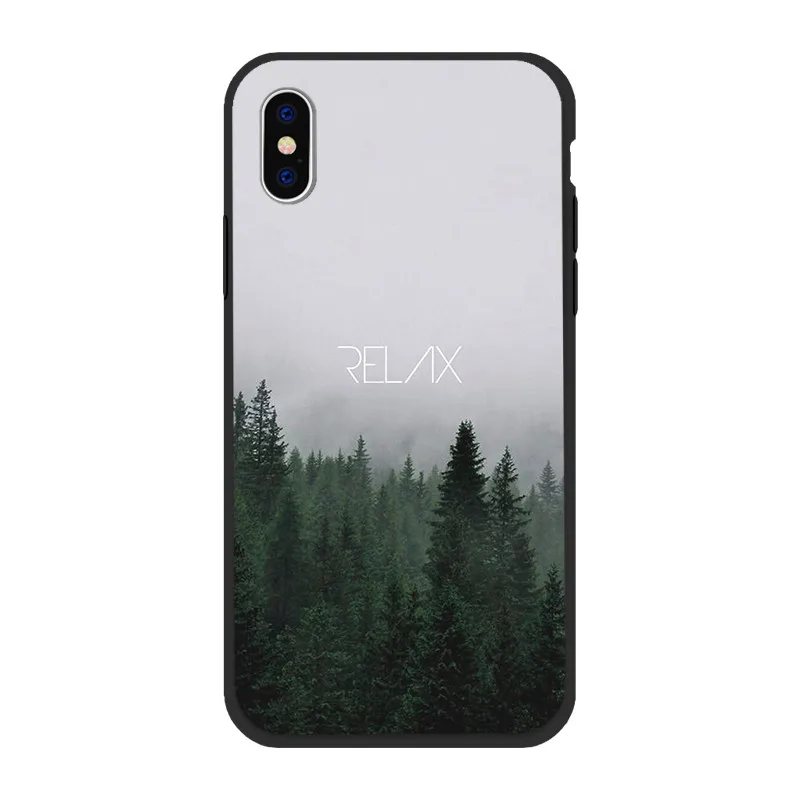 Black matte soft case for iPhone 7 8 6 6s 11 Pro Mountain Forest Clouds plastic Matte BacK Cover Coque For iPhone XR X XS MAX