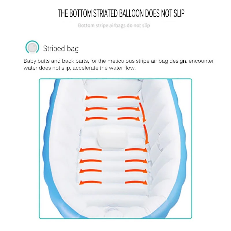 Складная Ванна имеет противоскользящее дно, поэтому ваш ребенок может спокойно сидеть в ванной, чтобы предотвратить опасность скольжения.