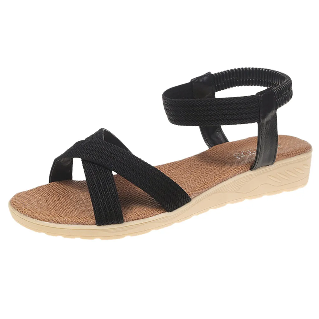 Женская модная пляжная обувь на низком каблуке с нескользящей подошвой Босоножки с открытым носком и перекрестными ремешками