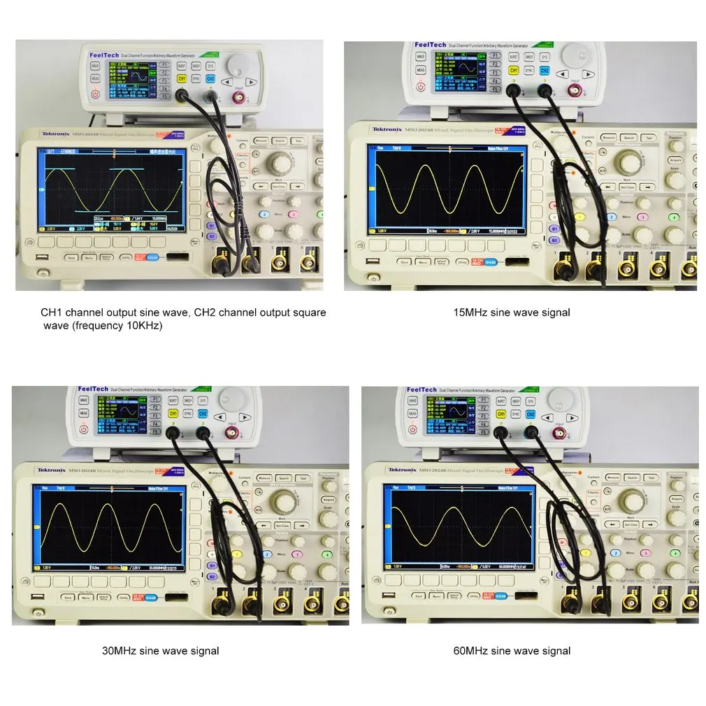 Типы сигналов: синус, квадрат (рабочий цикл регулируется), пульс (ширина импульса и время цикла можно установить точно), треугольник/пандус, Пилообразная волна, CMOS, четыре канала TTL, DC, полуволна, полная волна, положительная ступень, обратная ступень, положительная ступень, обратная сила, пульс Лоренца, многотоновая, Шум, ЭКГ, трапециевидный пульс, Синк пульс, узкий пульс, Гаусс белый шум, AM, FM, и другие 64 набора клиентской формы сигнала