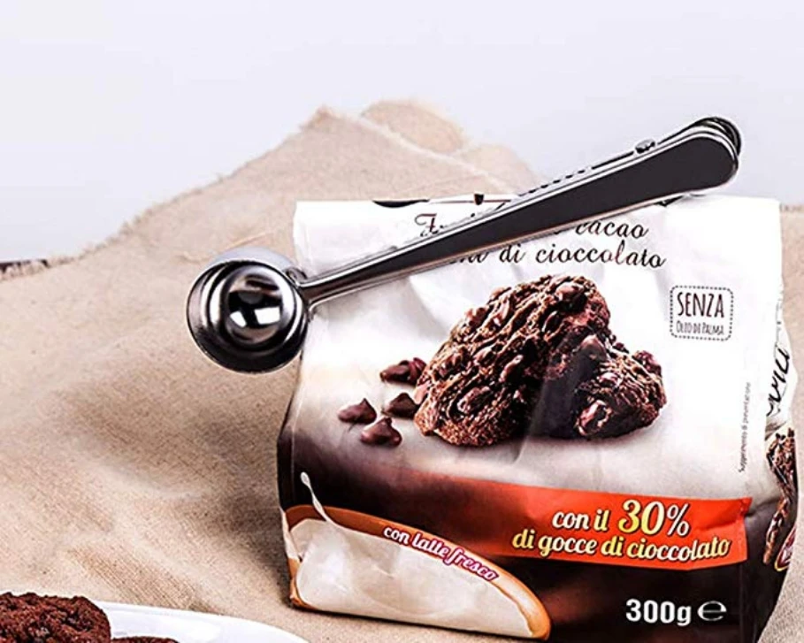 2. Многофункциональная ложка используется с зажимом и может использоваться в качестве ложки молочного порошка, кофе, приправы и тому подобное, а зажим используется для различных видов применения, таких как закуски, кофейные мешки и тому подобное