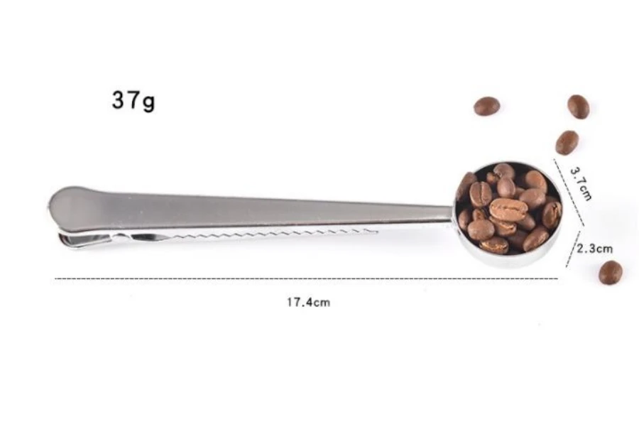 1. Эту двухфункциональную ложку можно использовать для точного измерения кофе одновременно и герметизации мешка для обеспечения свежести.