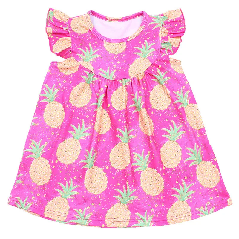 Розовые Топы принцессы с рисунком ананаса для девочек; Рубашка с рукавами-крылышками; Изысканная шелковая рубашка для маленьких девочек; Летняя Праздничная рубашка
