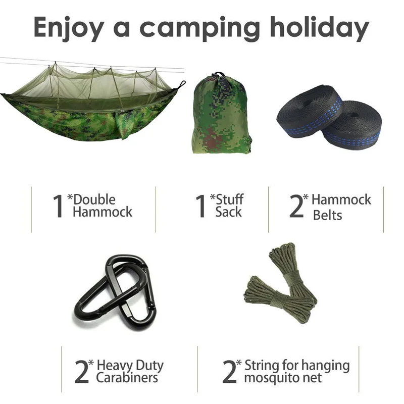 【 Высококачественный нейлоновый материал 】 изготовлен из высокопрочной нейлоновой ткани taffta 210T и специально разработанной прочной сетчатой ткани, мягкой и удобной. Прочная конструкция позволяет держать до 200 кг. 【 Размеры гамаков 】 102inx 55 дюймов/260 см * 140 см (Д * Ш); Удобное хранение, после хранения размера и бумаги формата А4 одного размера. Не Занимайте место. 【 Легкий, но прочный nad 】 качество пряжки очень хорошее. Крепеж очень прочный и долговечный. Используйте очень безопасный. Вы можете легко связать его между двумя столбами или деревьями с помощью прикрепленной веревки и крючков. 【 Ветрозащитная и противомоскитная 】 сетчатая крыша защищает вас от раздражающих комаров и насекомых. Предлагаем удобный релаксационный выбор для отдыха на солнце или под деревом. Качели спальный гамак кровать. Посылка включает в себя: Один гамак с москитной сеткой с веревками и карабинами, Один дождевой брезент с аксессуарами.