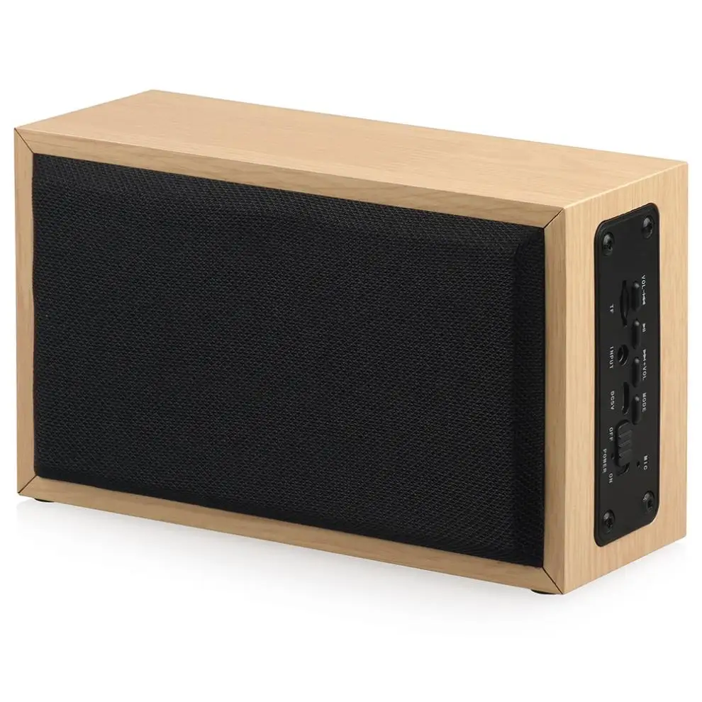 -Портативное высокомощное bluetooth-совместимое аудио с деревянной коробкой: коробка изготовлена из высокоплотного синтетического волокна, достаточно прочная.