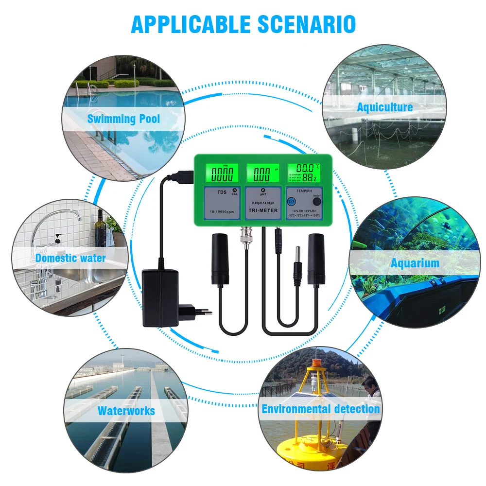Этот новый монитор качества воды является профессиональным и необходимым инструментом для тестирования PH/температуры/CF/RH/EC уровня раствора. Подходит для аквариумного бассейна, безпочвенного выращивания, лаборатории и окружающей среды воды.