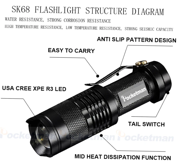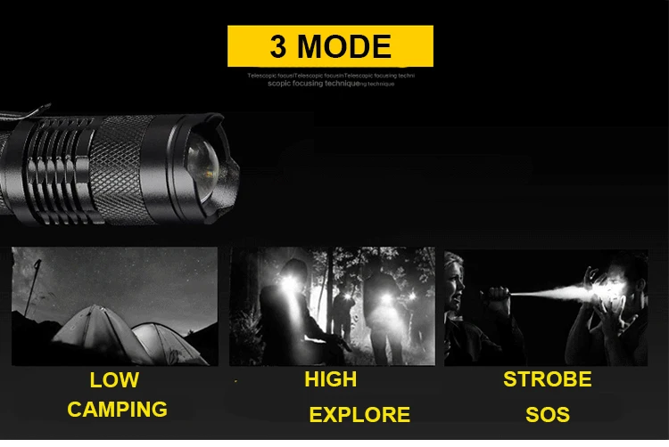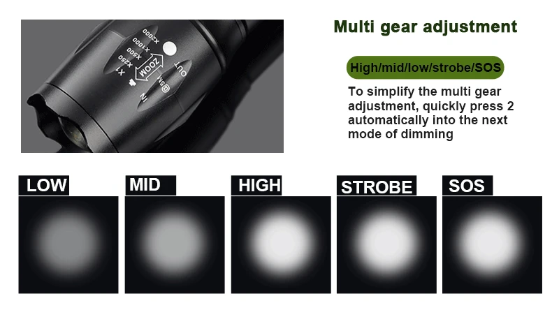• Режим: 5 режимов (High - Medium - Low - Strobe - SOS)