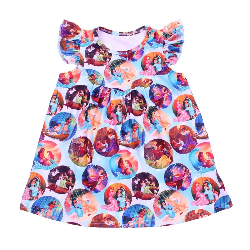 Детские топы; Рубашка с длинными волосами; Рубашка принцессы с героями мультфильмов; Изысканные летние топы принцессы из молочного шелка с рукавами-крылышками для маленьких девочек