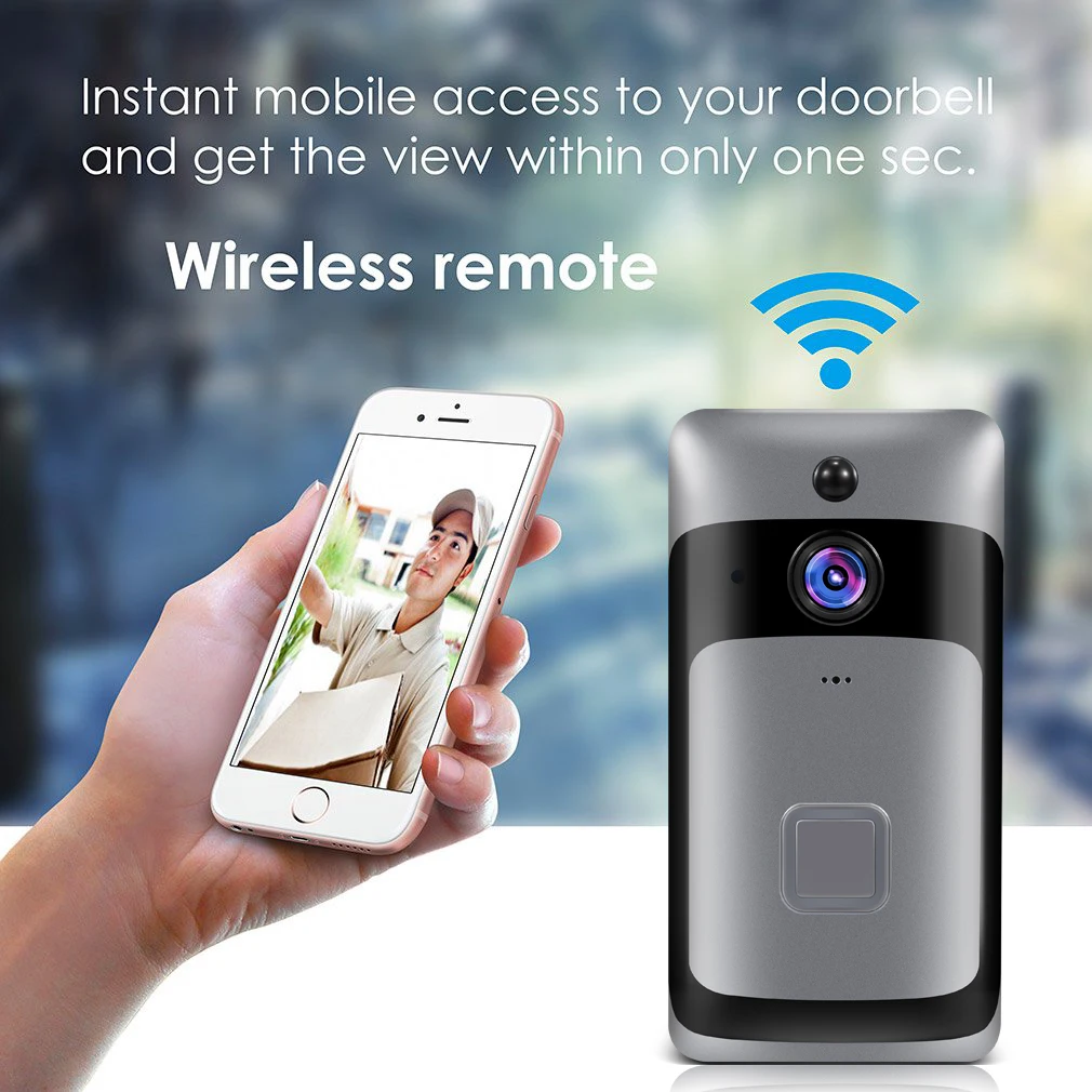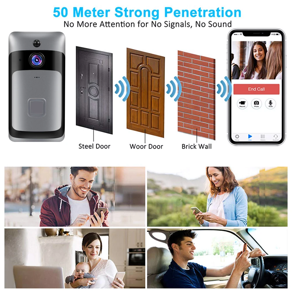 Этот Дверной Звонок может подключаться к мобильный телефон через 2,4G WiFi, кабель не требуется. Когда Посетитель нажимает на дверной звонок, звук будет обнаружен, а изображения и звонки в реальном времени будут отправлены на ваш телефон через наше приложение.