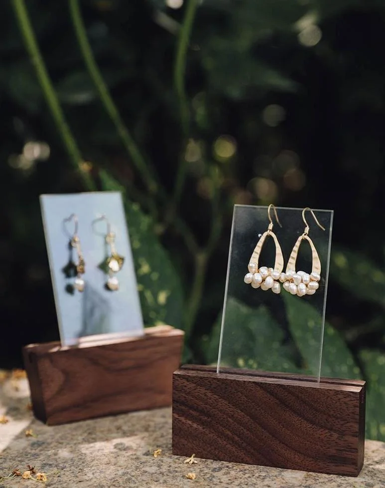 Wood Ring Display Stand Jewelry Storage Tray Ear Stud Display Stand Ear Nails Earrings holder Photo Clip Earring Display Holder