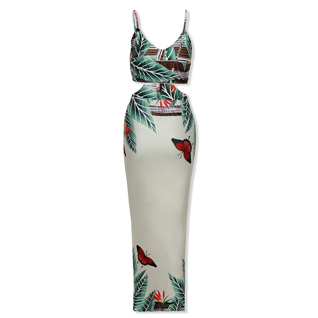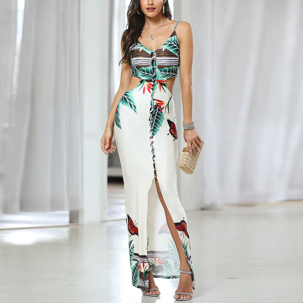 Новое Женское Гавайское платье с цветочным принтом, праздничное пляжное платье с лямкой на шее