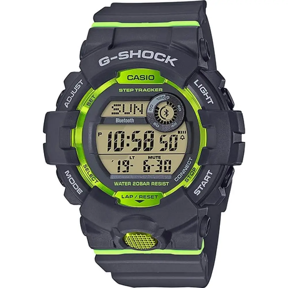G-SQUAD. Models of this series are equipped with single-digital displays to improve readability. The digital display is divided into the upper, middle and lower sections, in the upper right corner is a digital disc. Each display area shows different measurements, timing and other information, which provides useful data about your daily activities. The shockproof body protects the mechanism from shock and vibration. The dial is illuminated by LED, the auto-backlight function lights the dial when turning the clock to the face. The pedometer measures the number of steps from 0 to 999999. Target installation in the range of 1000 to 50,000. Graphic Display of passed steps in the last 7 H. Sound reminder of lack of activity and achievement of the goal. Bluetooth wireless technology®4.0 with ultra-low power consumption to sync with your smartphone. When connected to a smartphone, the clock adjusts the current time, and also copies world time settings. World time-300 cities. Simultaneous display of current time in two different time zones. 12 and 24-hour time format. Stopwatch with two accurate readings: 1/100 with (up to 1 H) and 1C (after 1 H) and measuring time 24 h. Memory for 200 stages (date, time, circle time). Ability to set 10 target timers. Countdown timer from 1 min to 1 H with auto-repeat. The number of repeat timer is set from 1 to 20. Mute/enable sound function. Multifunctional watches with a stylish design-the choice of active and purposeful.