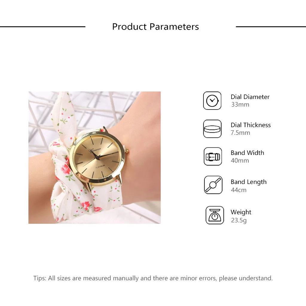 Чехол Диаметр: 40 мм Толщина циферблата: 7,5 мм Длина ремешка: 440 мм (включая чехол) Ремень Материал: ткань Головка Материал: сплавПосылка включает в себя: