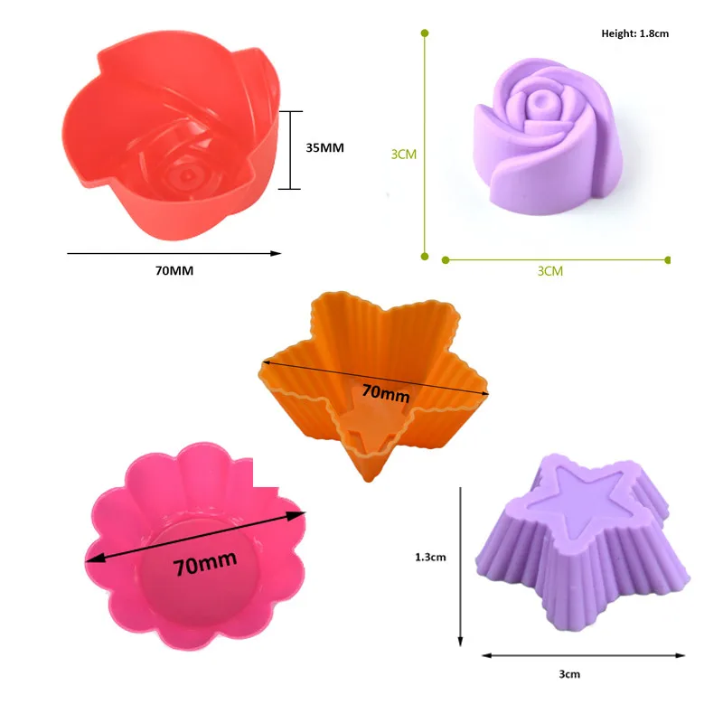 1. Материал для пищевых продуктов: Изготовлен из 100% высококачественного пищевого силикона, одобрен FDA, не содержит BPA и экологически чистый, который отлично подходит для изготовления кексов, маффина, gumdrop или шоколада.