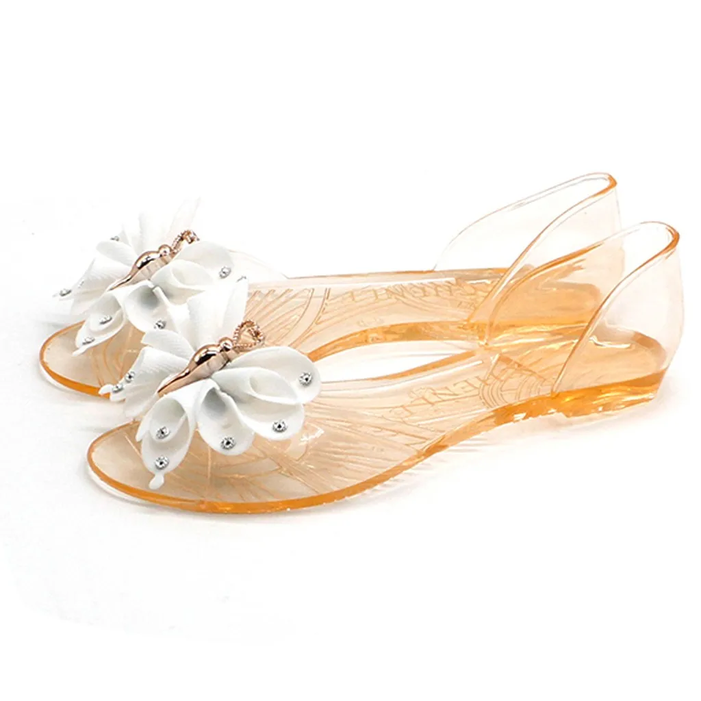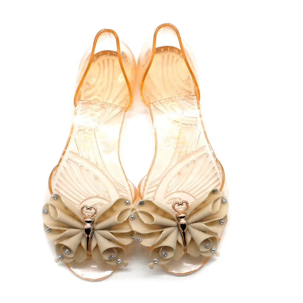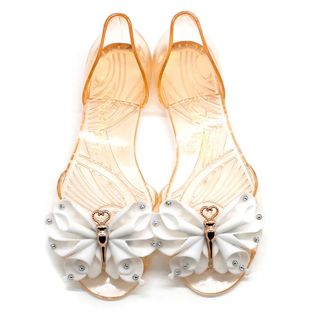 Женские повседневные сандалии на плоской подошве с открытым носком и бабочкой; пляжная обувь без застежки