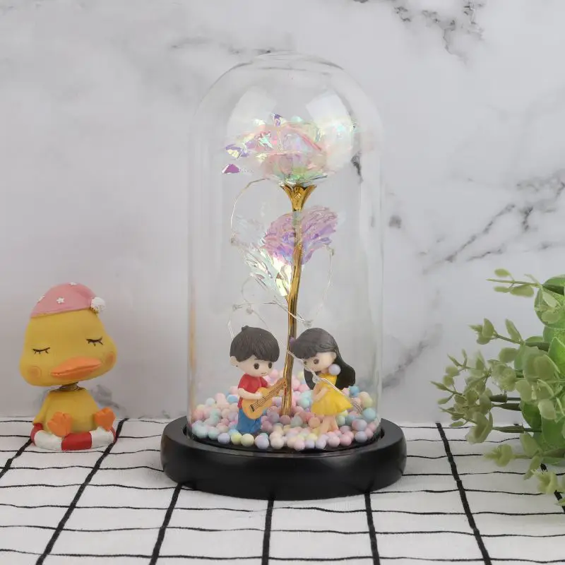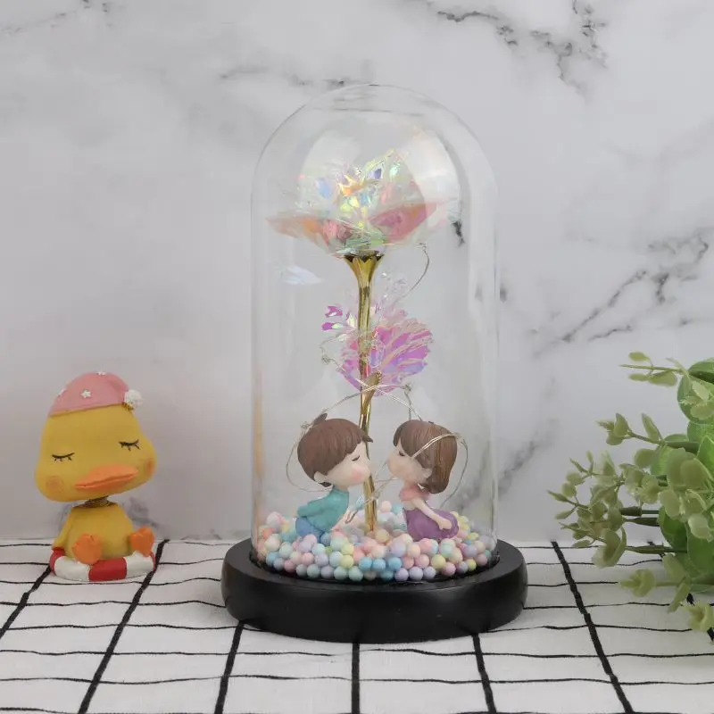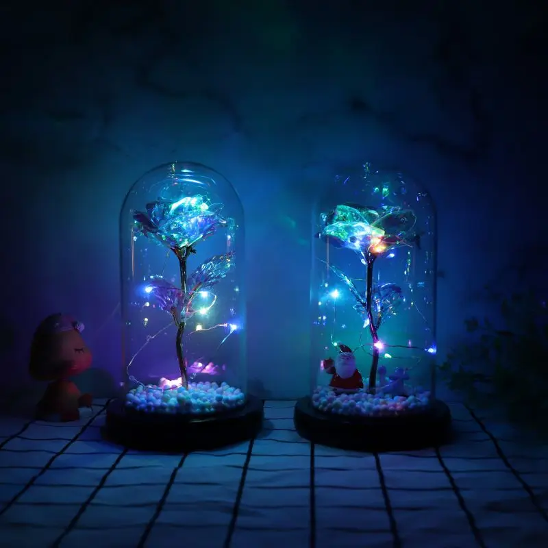 24 K Фольга Золотая Роза в стеклянном куполе со светодиодной подсветкой для свадьбы, Дня Святого Валентина, Рождества, украшения на Хэллоуин