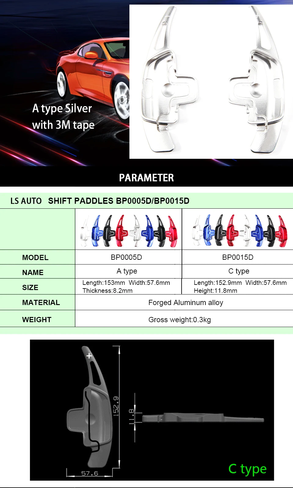 Это список для 2 частей алюминиевого сплава колеса переключения DSG весло переключения расширения. Уникальный спортивный стиль сдвиг весло для ugrading стиль вашего автомобиля. Изготовлен из высококачественного алюминия, гладкая отделка, идеальное ощущение обработки. Они являются отличным удлинителем модифицированного устройства для вашего любимого автомобиля.