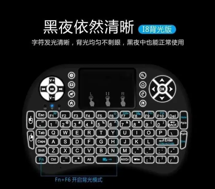 Беспроводная Клавиатура MINI i8 2,4 ГГц с теплой белой подсветкой и тачпадом-это уникальная клавиатура с удобным дизайном и превосходной производительностью. Он специально разработан с теплой белой подсветкой, которая излучает мягкий и мягкий светильник во время использования клавиатуры. Благодаря своему гуманному дизайну, он приносит маленьким ручкам усталость. Беспроводной стиль облегчает использование клавиатуры. Более того, он оснащен встроенной сенсорной панелью для удобной работы. Ну, вы не находите это идеальный предмет для ежедневной игры?