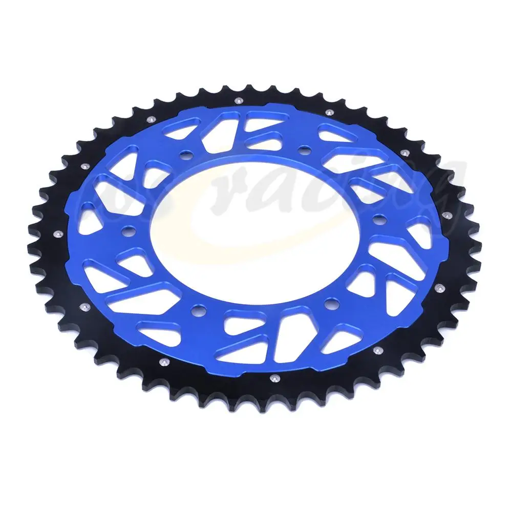 This sprocket has steel teeth and an 6061-T6 aluminum inner part. Both sections are permanently joined by high-strength rivets. Stealth sprockets last at least three times longer than any other aluminum sprocket while it is half the weight of a normal steel sprocket