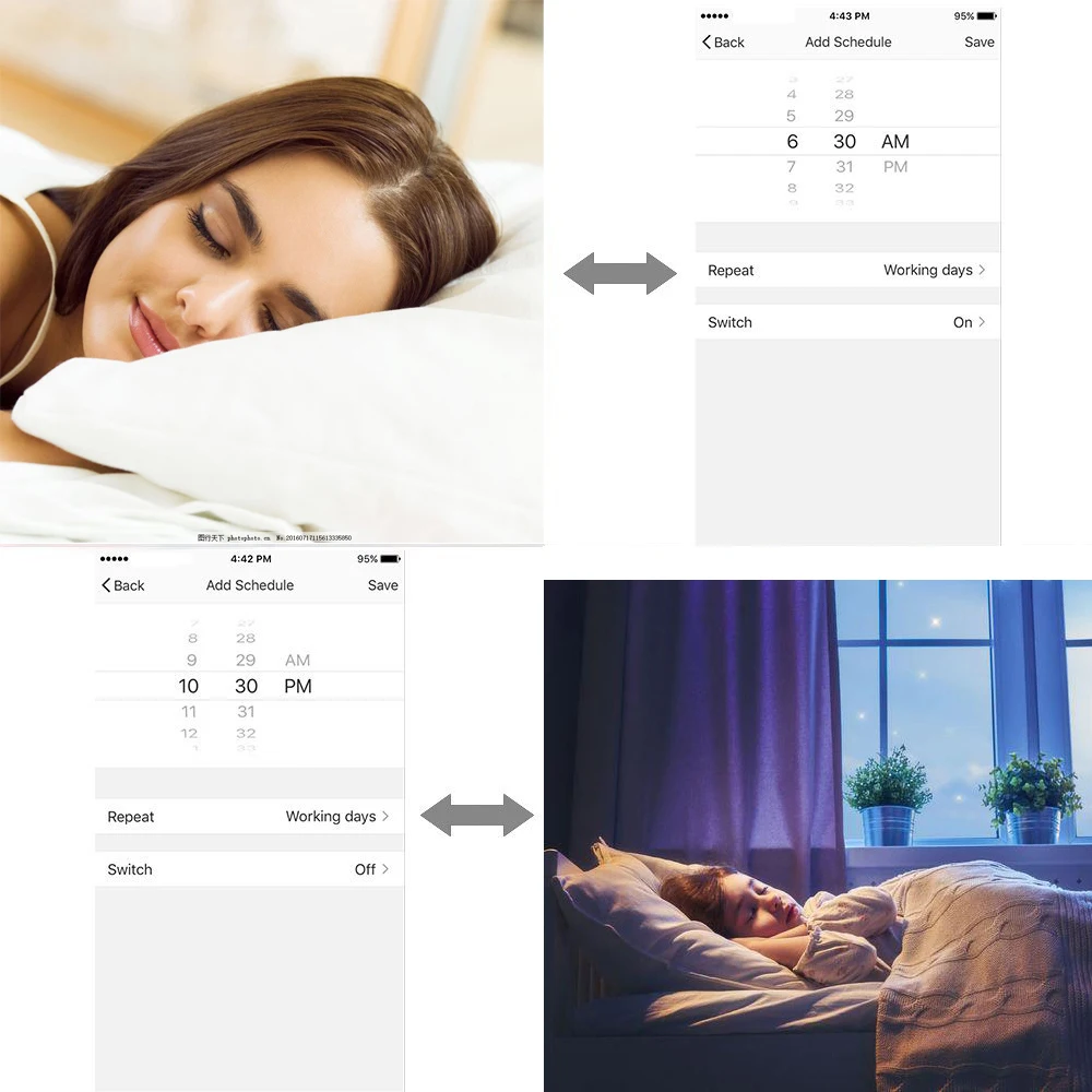 【Timing функциональноВы можете установить таймеры для включения/выключения умной потолочной лампы. Вы никогда не приедете в темный и холодный дом, вы даже можете рандомизировать работу Вашего светильник вдали от дома и сделать его похожим на кого-то дома.
