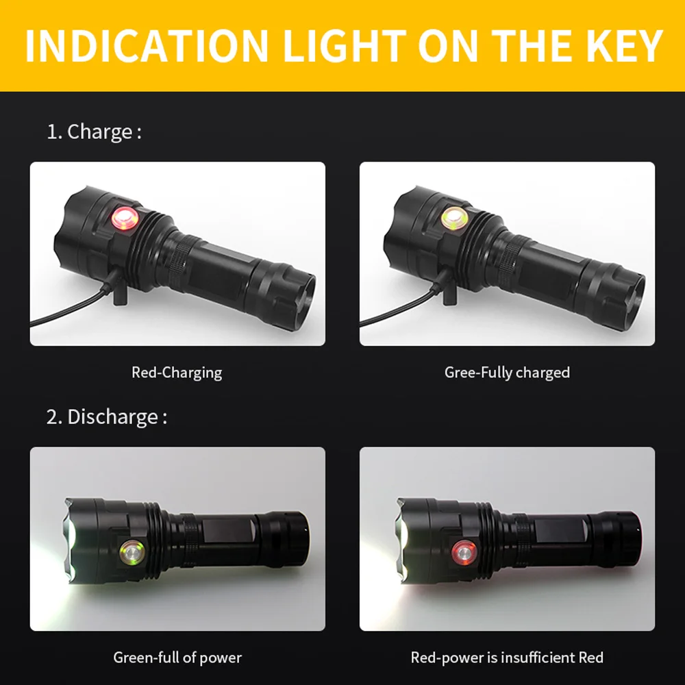 Тип лампы: P90 (9x9 мм) Защита от заряда/разряда: встроенная система перезарядки/разрядки IC для продления срока службы батареи Индикация батареи: аккумулятор полный, светодиод зеленый, и батарея слаба, красный Индикация зарядки: светодиодный индикатор красного цвета при зарядке, зеленый цвет при полной зарядке Характеристики: Общая длина 155 мм, диаметр головки 55 мм, диаметр хвоста 34 мм Режим затемнения: шесть уровней затемнения: сильный светильник, средний Светильник, низкий светильник, вспышка, предупреждающая вспышка, SOS, длительное нажатие в течение двух секунд, чтобы выключить Функция масштабирования: нет Рабочее напряжение: 3,7 V Цвет корпуса: черный Светящийся цвет: белый свет Цветовая температура лампы: 7500K Материал корпуса: алюминиевый сплав Обработка поверхности: износостойкое анодирование Тип переключателя: ламповый пресс-переключатель Водонепроницаемость: IPX5 (защита от дождя и брызг воды) Режим питания: 1 шт. 18650 или 1 шт. 26650 (без аккумулятора) Вес нетто продукта: 265 г (разница в весе вызвана количеством отверстий под светильник)