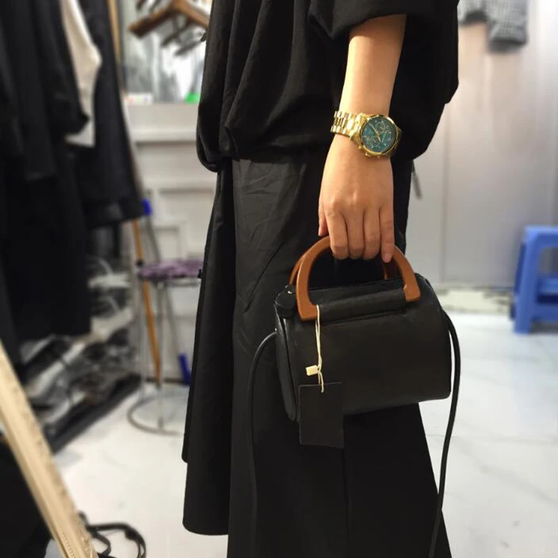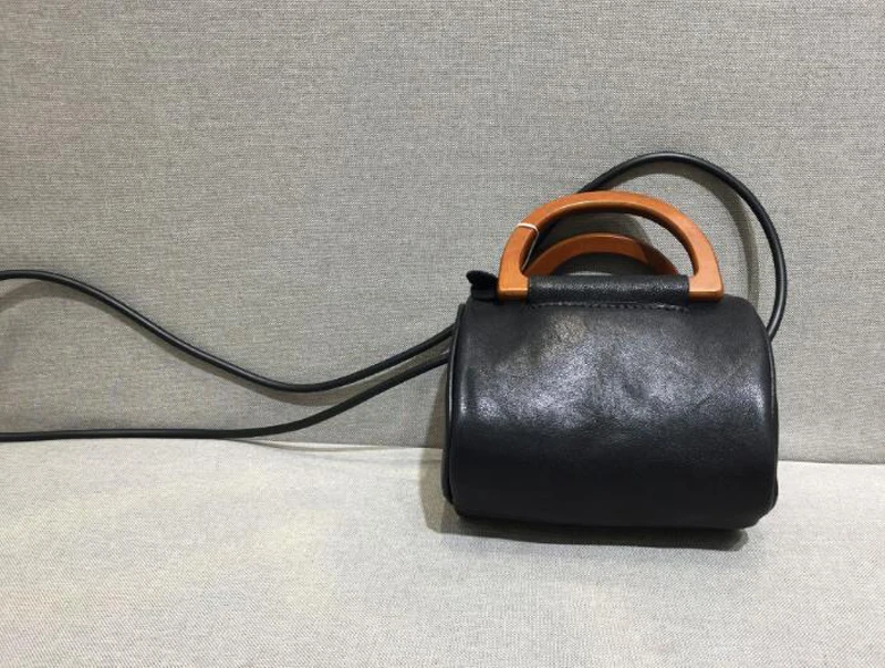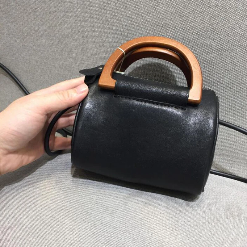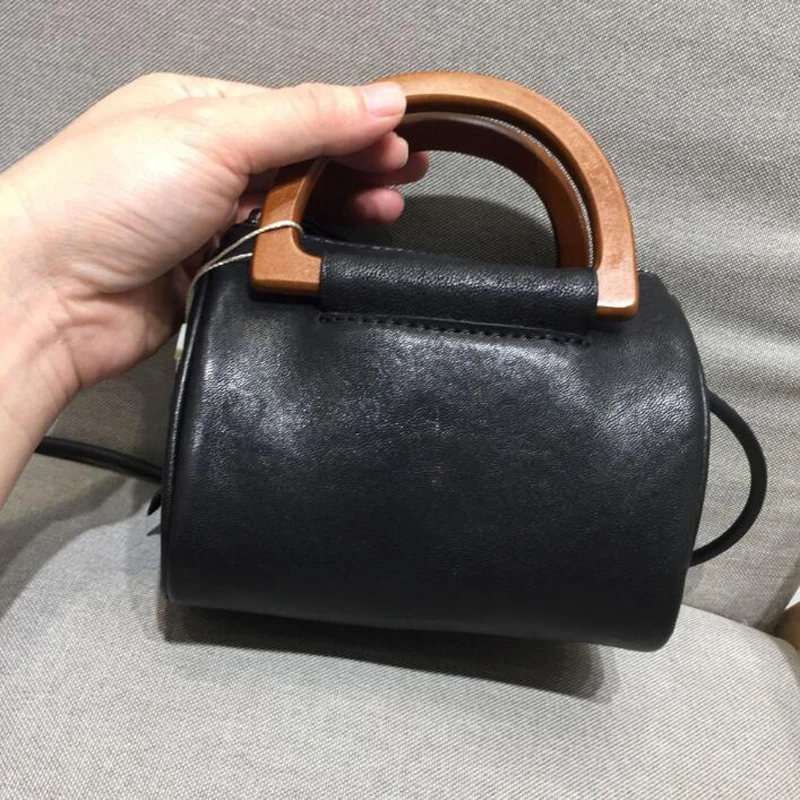 Сумка через плечо женская из натуральной кожи с деревянной ручкой