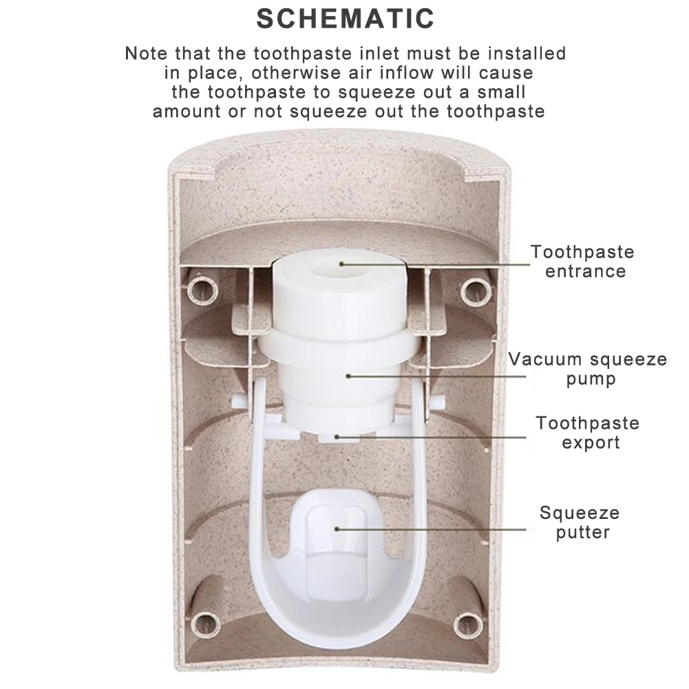 Обратите внимание, что вход зубной пасты должен быть установлен на месте, в противном случае поток воздуха вызовет набухание зубной пасты приведет к тому, что зубная паста выдавливает небольшое количество или не выдавливает зубную пасту