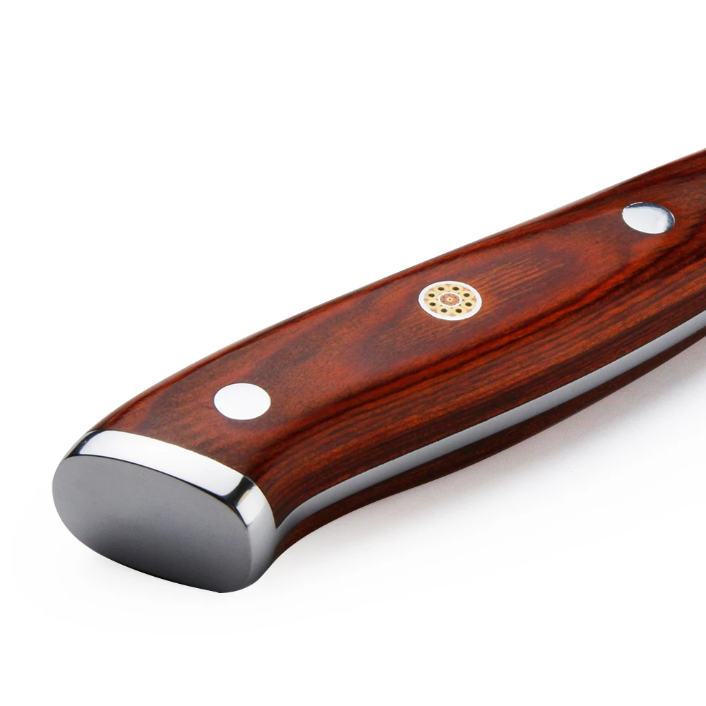 02РучкаИзготовлено из популярного красного дерева пакка, 8 мм изысканных медных гвоздей сливы в середине.Зеркальная поверхность, выглядит более красивоЭргономичная ручка, нескользящая.