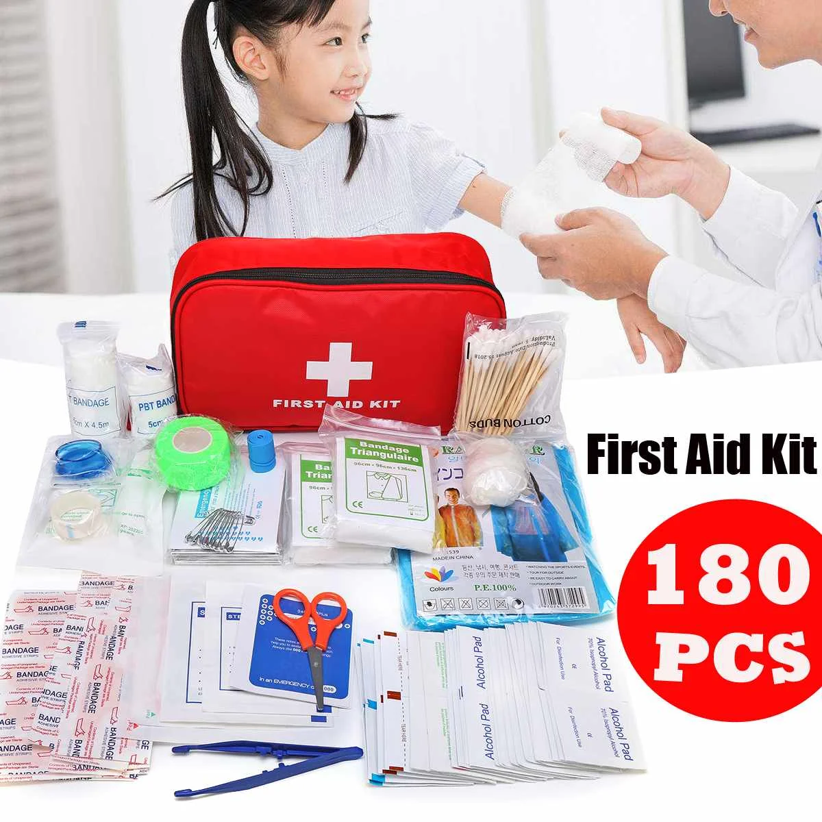 Ярко-красная сумка и яркий крест символ делает комплект легко найти в экстренных случаях чехол.
