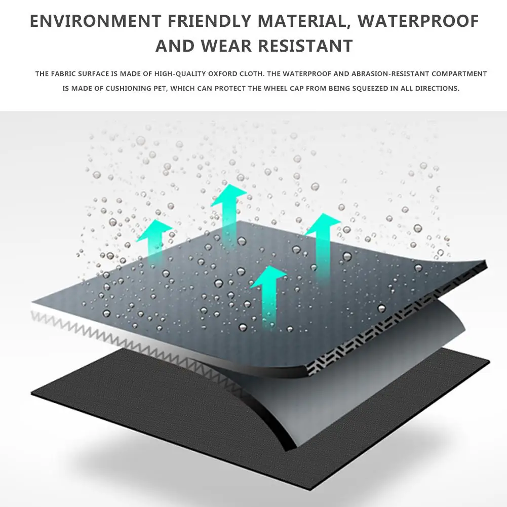 1. Высококачественный Материал: изготовлен из высококачественной ткани Оксфорд, сумка для хранения является водонепроницаемой и износостойкой. Отделение изготовлено из мягкого материала для домашних животных, который может защитить крышку колеса от сдавливания во всех направлении.