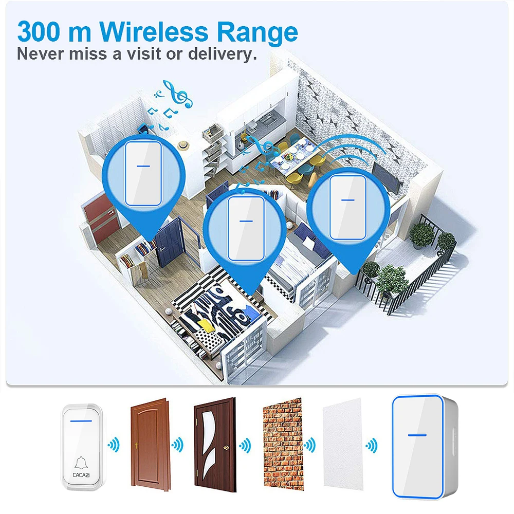 Беспроводной дверной звонок CACAZI-это передатчик, автономный дверной звонок, без батареи,
