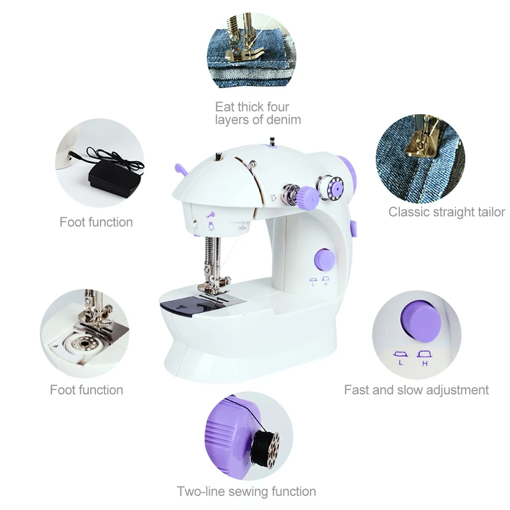 -Эта мини-швейная машина предлагает двойные линии и контроль стежка.
