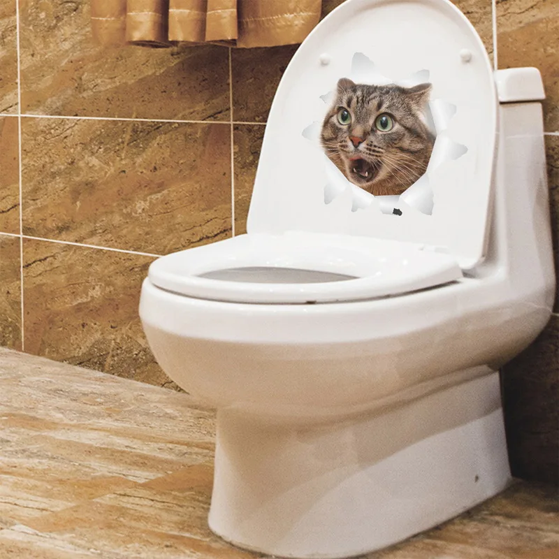 Cartoon animal 3d toilet stickers on the toilet seat cute cats PVC wall sticker bathroom refrigerator door decor stickers decals