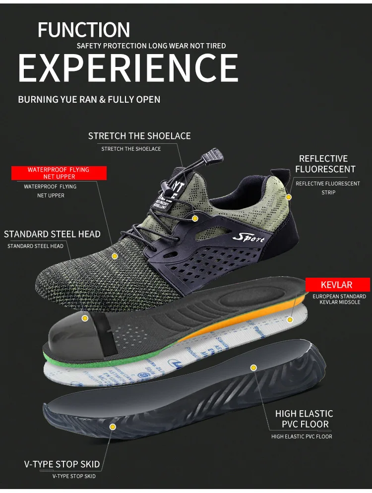 Цвет: зеленый/синий/серый/черный Размер: 37-47 Функция: анти-разбивание, анти-прокол, анти-вода. Анти-скольжения, подходит для различных видов дорожного покрытия Ткань: водонепроницаемая ткань NSDF: MFSH/STRFTCH CI OTH Головка: Расширенная голова европейского стандарта Промежуточная подошва: кевлар европейского стандарта Подошва: высокая подошва из ПВХ