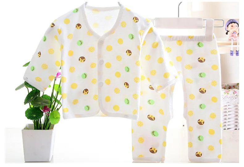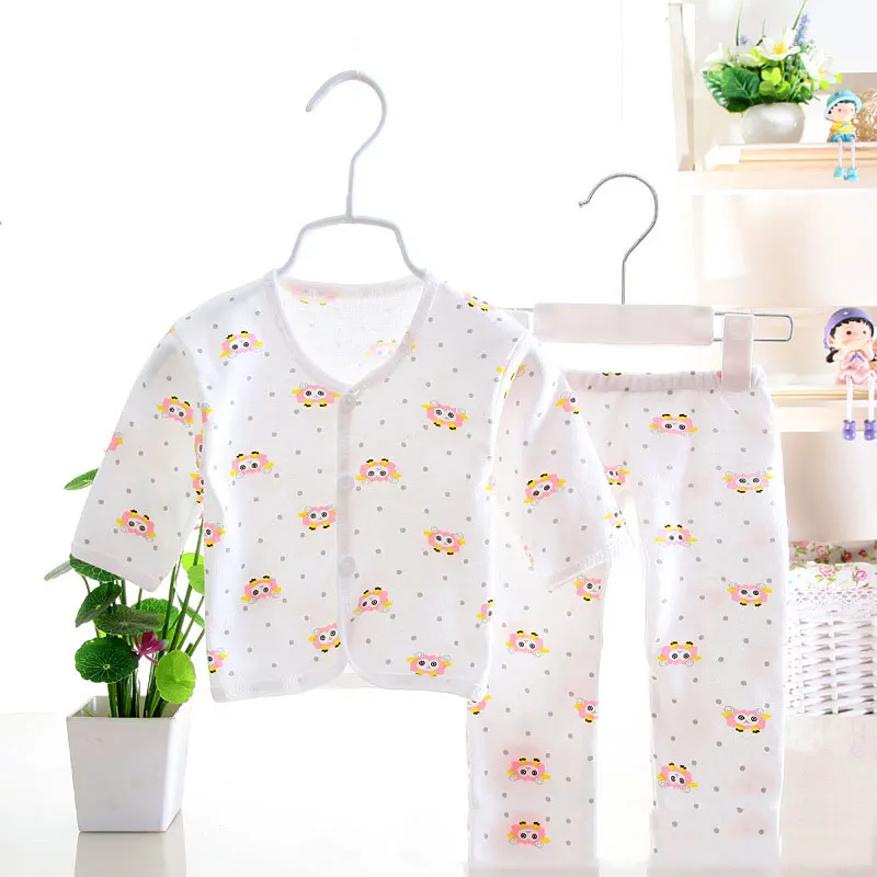 Нижнее белье унисекс для новорожденных детей 0-3 месяцев, рубашка с принтом животных и штаны, хлопковый мягкий комплект одежды из 2 предметов для мальчиков и девочек, Таблица размеров: размер для возраста длина одежды длина брюк Длина рукава От 0 до 3 месяцев 28 см 33 см 16 см