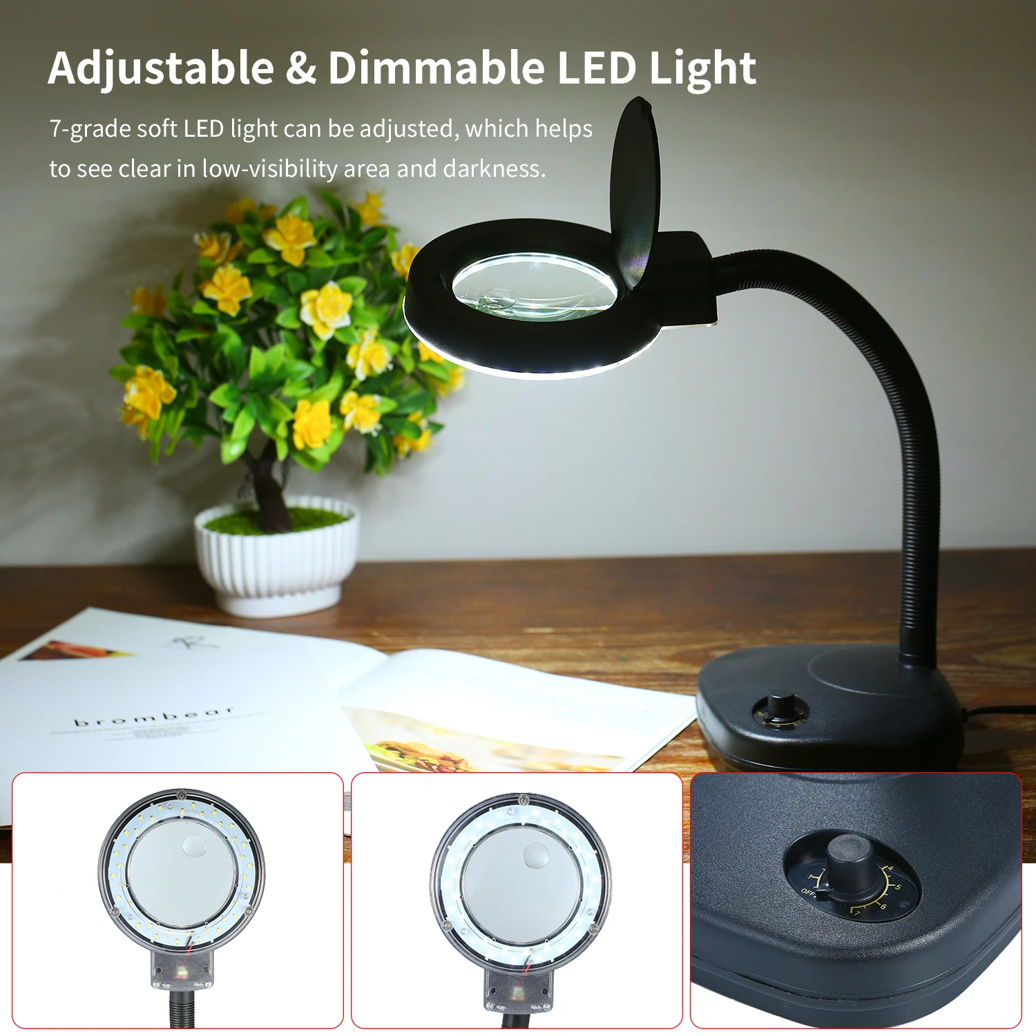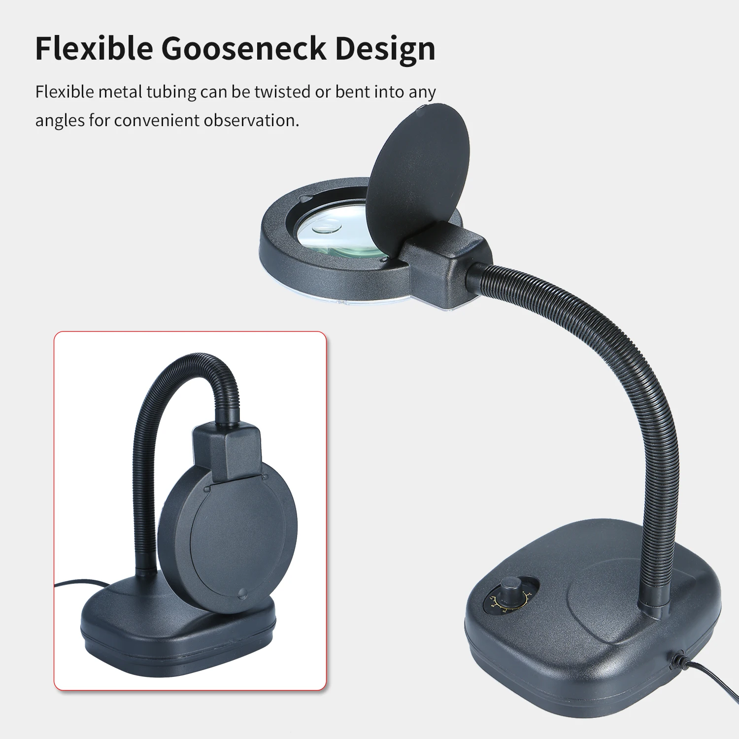 Широко применяется для металлических работ, маникюра/педикюра, гравировки, рукоделия, чтения, производства биологических образцов и т. д. С дизайном регулируемый светодиодный светильник, гибкая гусиная шея, пылезащитная крышка и объектив 5x/10x, эта настольная Лупа с светильник-идеальный подарок для вашей семьи и друзей, это также отличный инструмент для себя.