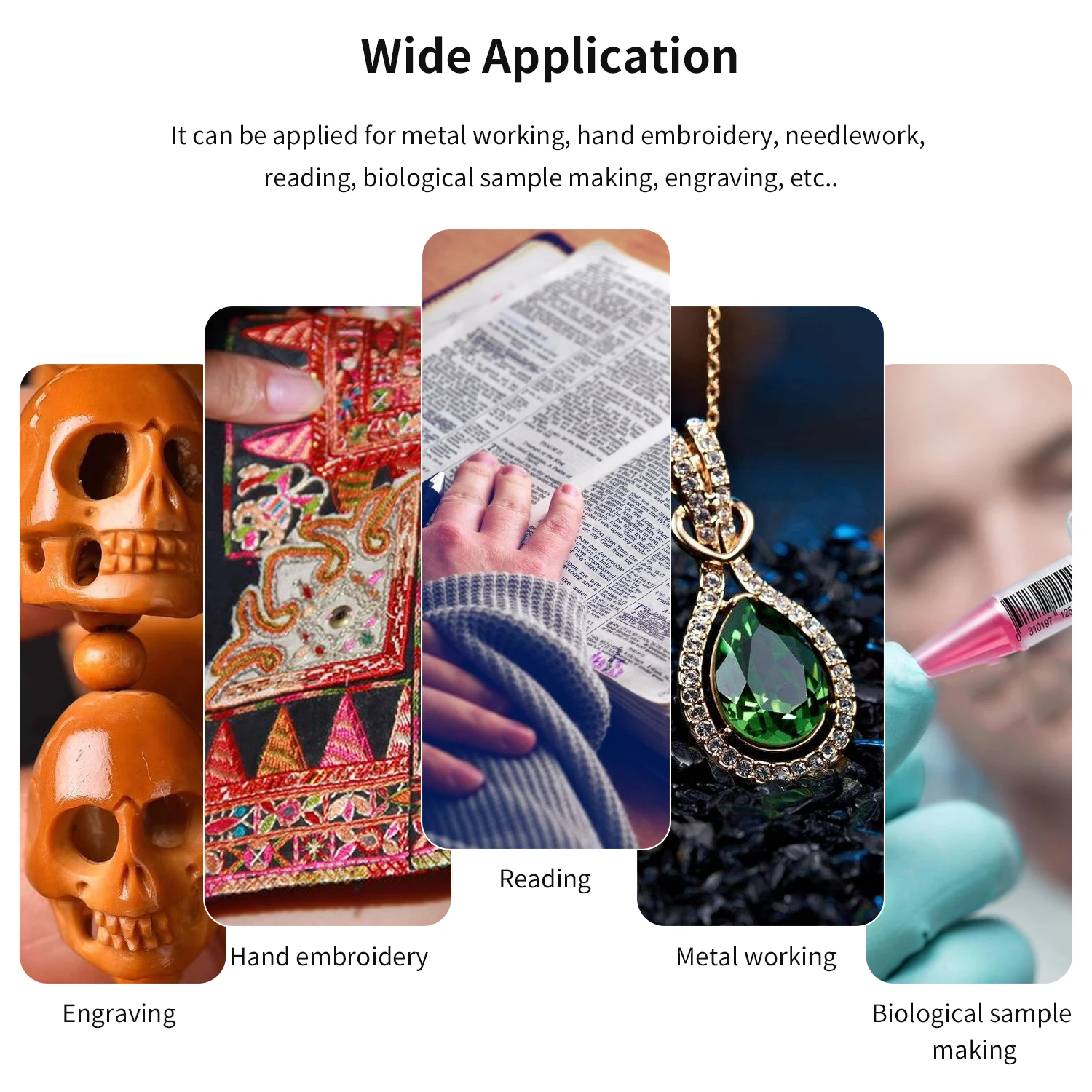 [Широкое применение]Он может быть применен для металлических работ, ручной вышивки, рукоделия, чтения, производства биологических образцов, гравировки и т. д.