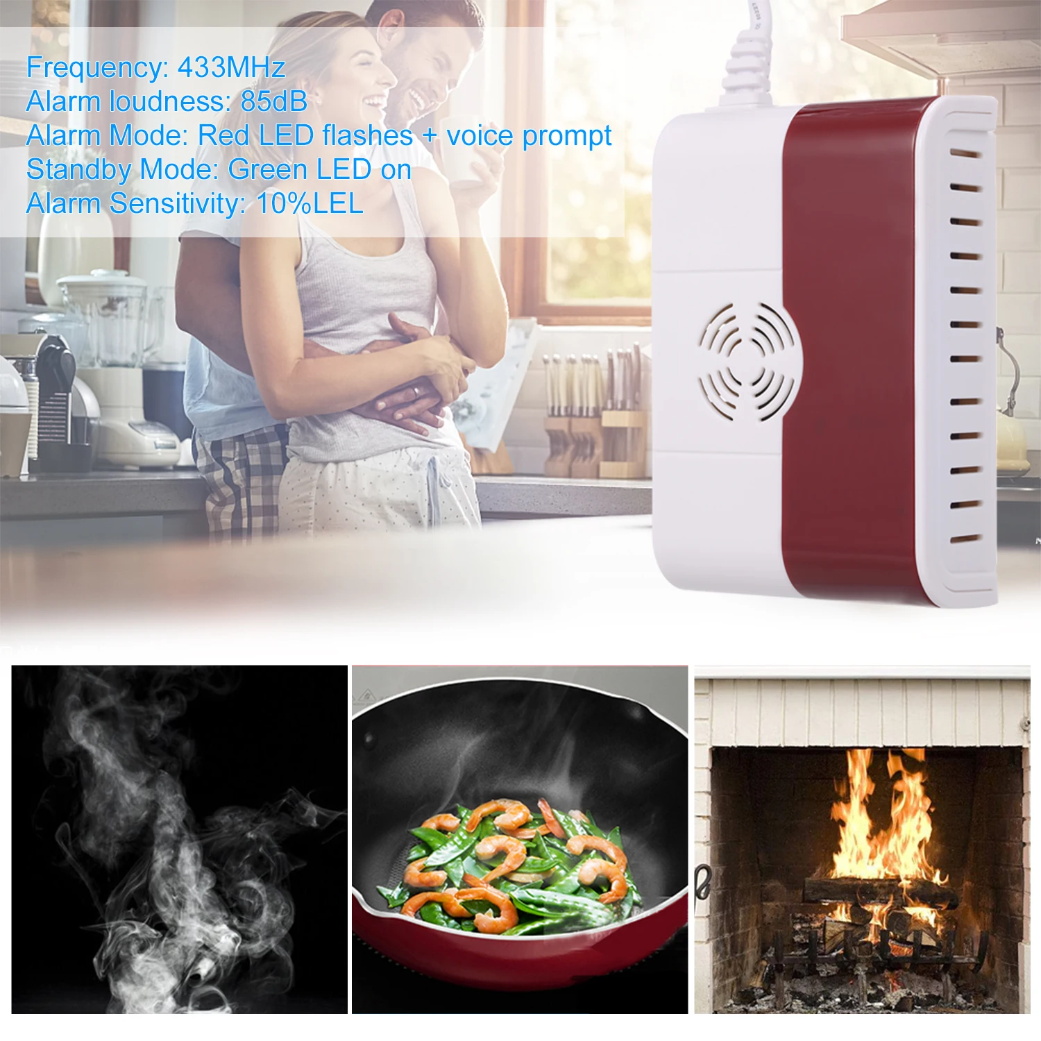 [Детектор природного газа, CO, LGP]Этот детектор газа в основном используется на кухне для обнаружения утечки природного газа (метана), CO (оксид углерода) и LPG (сжиженный нефтяной газ), предотвращения взрыва газа и защиты семейной безопасности.