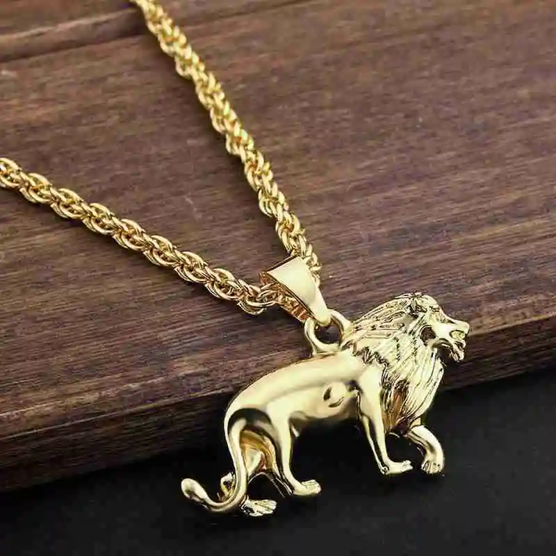 Модное ожерелье с подвеской в виде льва в виде животного, золотая цепочка в стиле хип-хоп, ювелирные изделия для мужчин и женщин
