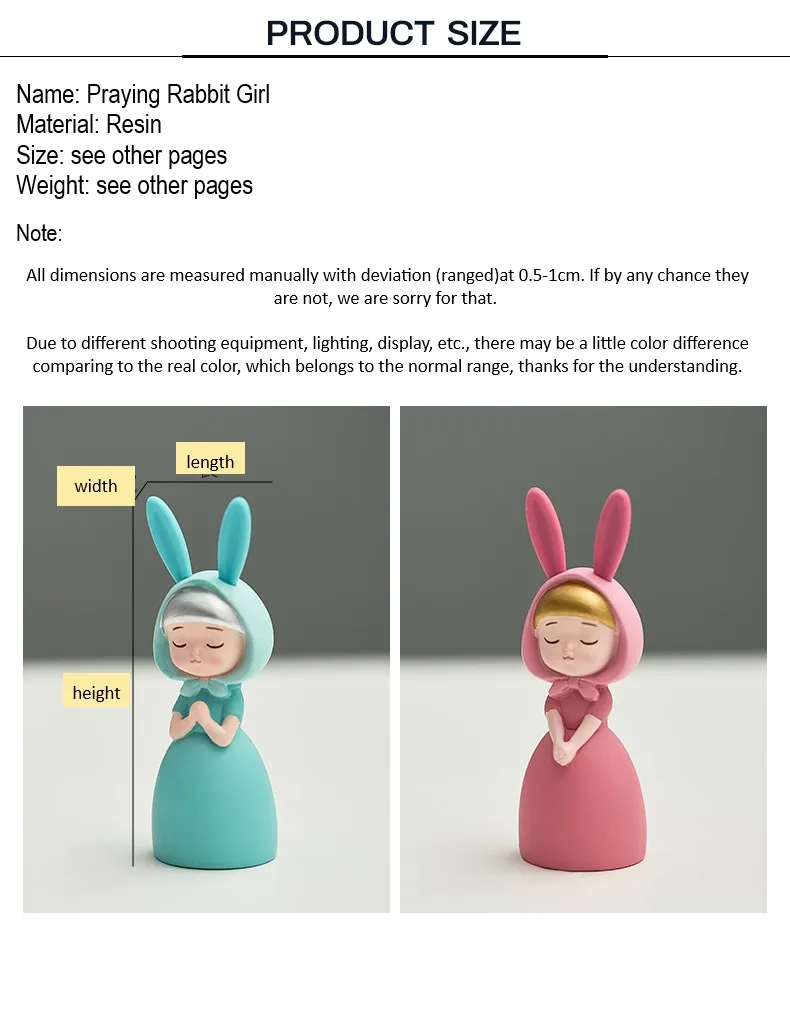 Смола прекрасный молиться кролик девушка дома отель Ресторан магазин украшения аксессуары украшения детский подарок интерьер автомобиля Acc