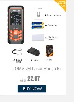 Features: The ULTRASONIC DISTANCE METER LASER POINTER is a perfect tool to quickly know the distance, area and volume of a room! It can measure distances in a straight-line from 1.5 feet o 60 feet. Your distance measurer transmits ultrasonic waves to a point you want to measure. Afterwards, it measures the time taken by the waves to reflect and then calculates and re-transcribes the distance. 1. 100% Brand new, high quality. 2. LCD with Backlight. 3. Weight(without battery): 108g 4. Power supply: 1 x 9v Alkaline Battery (battery not included) 5. Measure Distance From 1.5 Feet to 60 Feet.( About 0.5 to 18 meters) 6. Area, volume, addition, subtraction calculation. 7. Frequency: 40kHz (ultrasonic pickup) 8. Resolution 0.01M or 1/2 Inch. 9. Working temperature 32 F to 109.4 F ( 0 \'C to 43 \'C) 10. Accuracy:+/- 0.5%25 +/-1 11. Dimensions: about 155 x 75 x 45 mm 12. Auto OFF: switches off if you do not press any key for about 1 min. 13. Your distance measurer transmits ultrasonic waves to a point you want to measure. 14. It measures the time taken by the waves to reflect and then calculates and re-transcribes the distance. 15. Units of Measure : Feet/Meters Product Weight: about 135g Caution: Don\'t stare into the laser beam and also don\'t shoot laser beam to any other\'s eyes. The Laser emitted from the unit is visible laser of 650mm wavelength. Package Included: 1 x Ultrasonic Distance Measurer 1 x English Manual