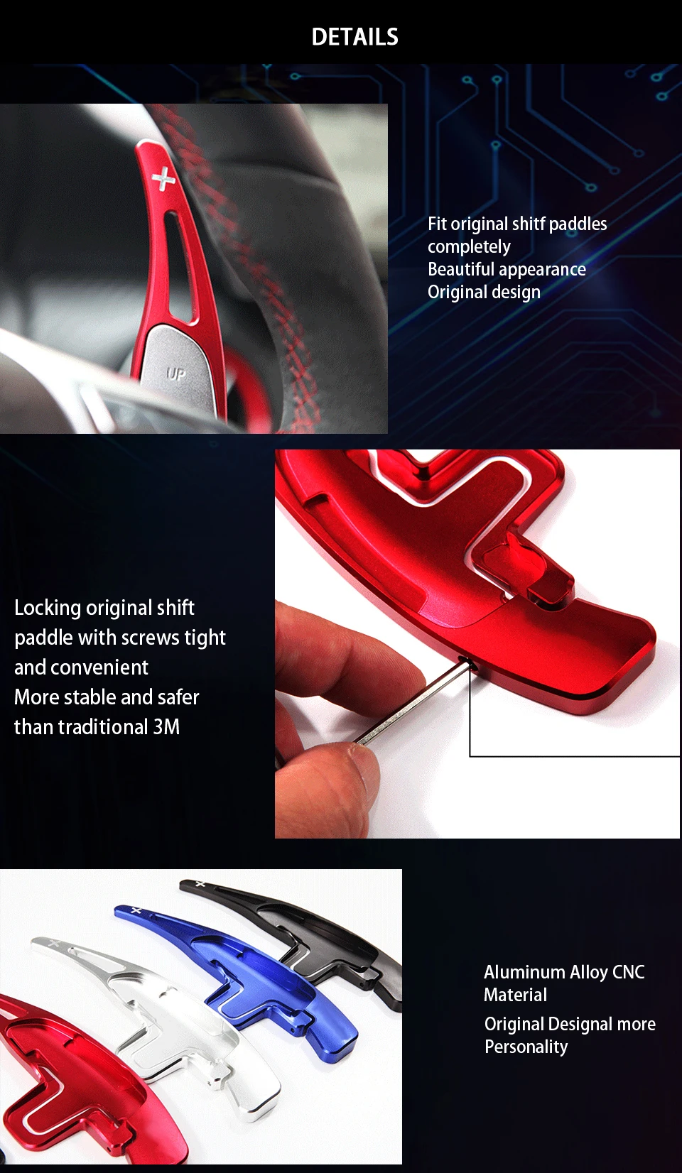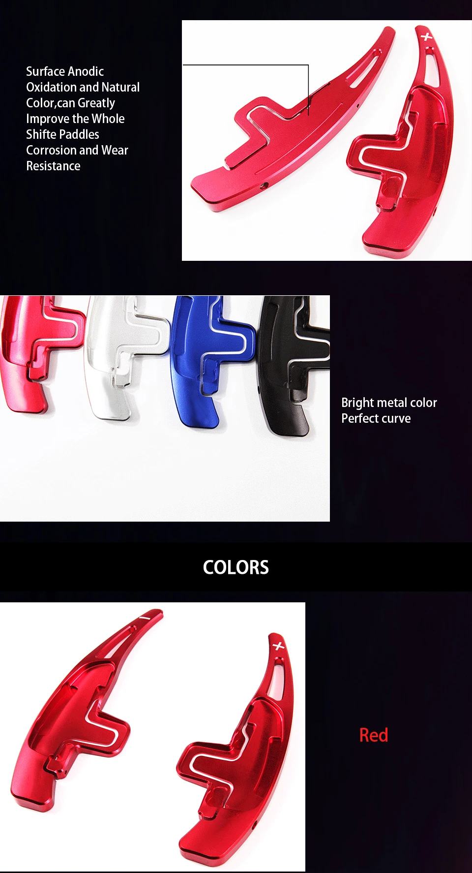 Это список для 2 частей алюминиевого сплава колеса переключения DSG весло переключения расширения. Уникальный спортивный стиль сдвиг весло для ugrading стиль вашего автомобиля. Изготовлен из высококачественного алюминия, гладкая отделка, идеальное ощущение обработки. Они являются отличным удлинителем модифицированного устройства для вашего любимого автомобиля.