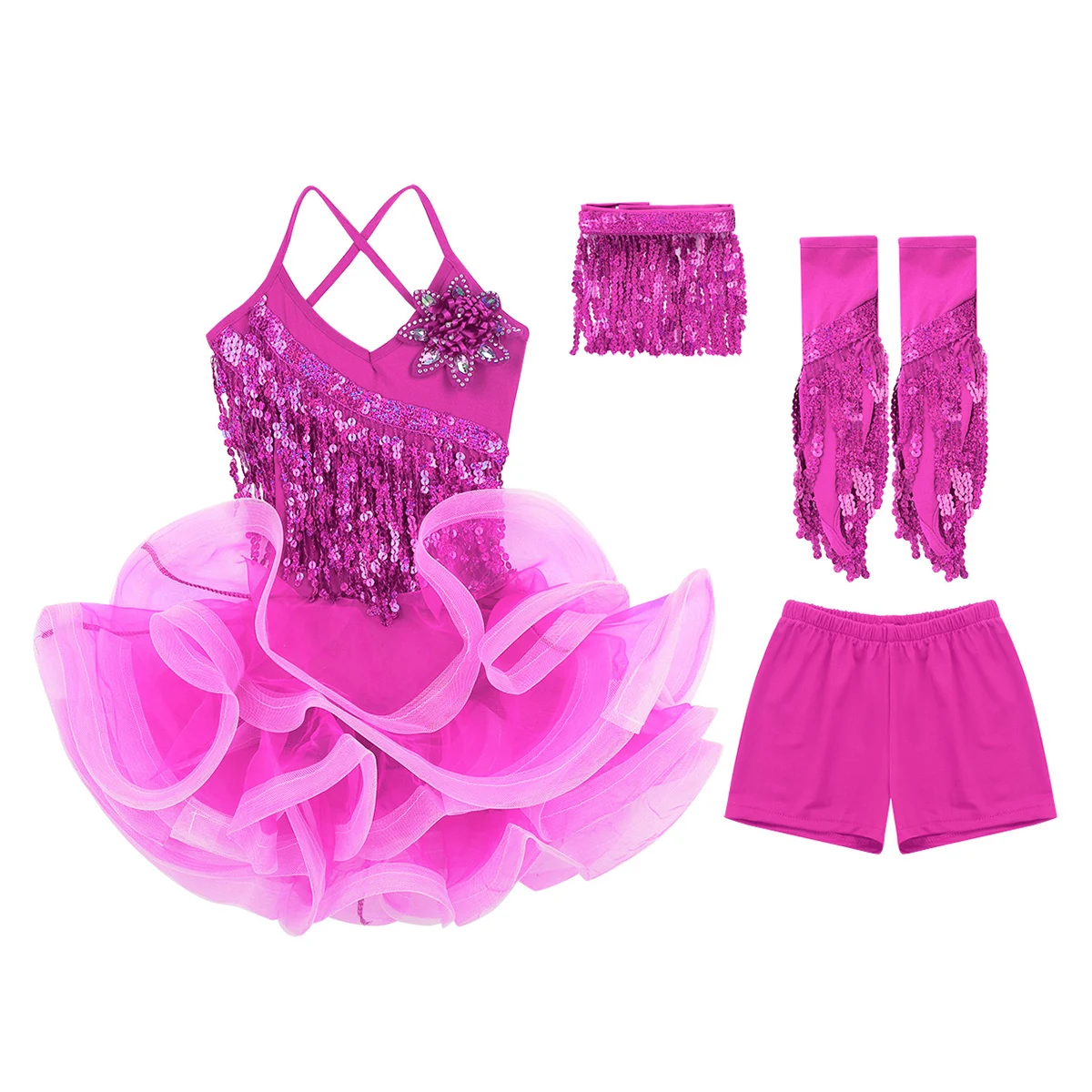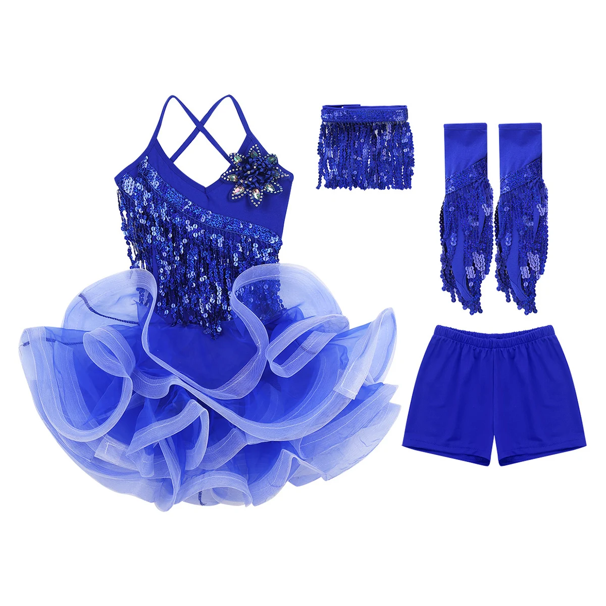 Ожерелье-чокер с застежкой на липучке, шорты с эластичным поясом и пара рукавов. Легкий, мягкий, хорошо двигается, показывая увлекательный танец и делая вашего ребенка центром внимания сцены.
