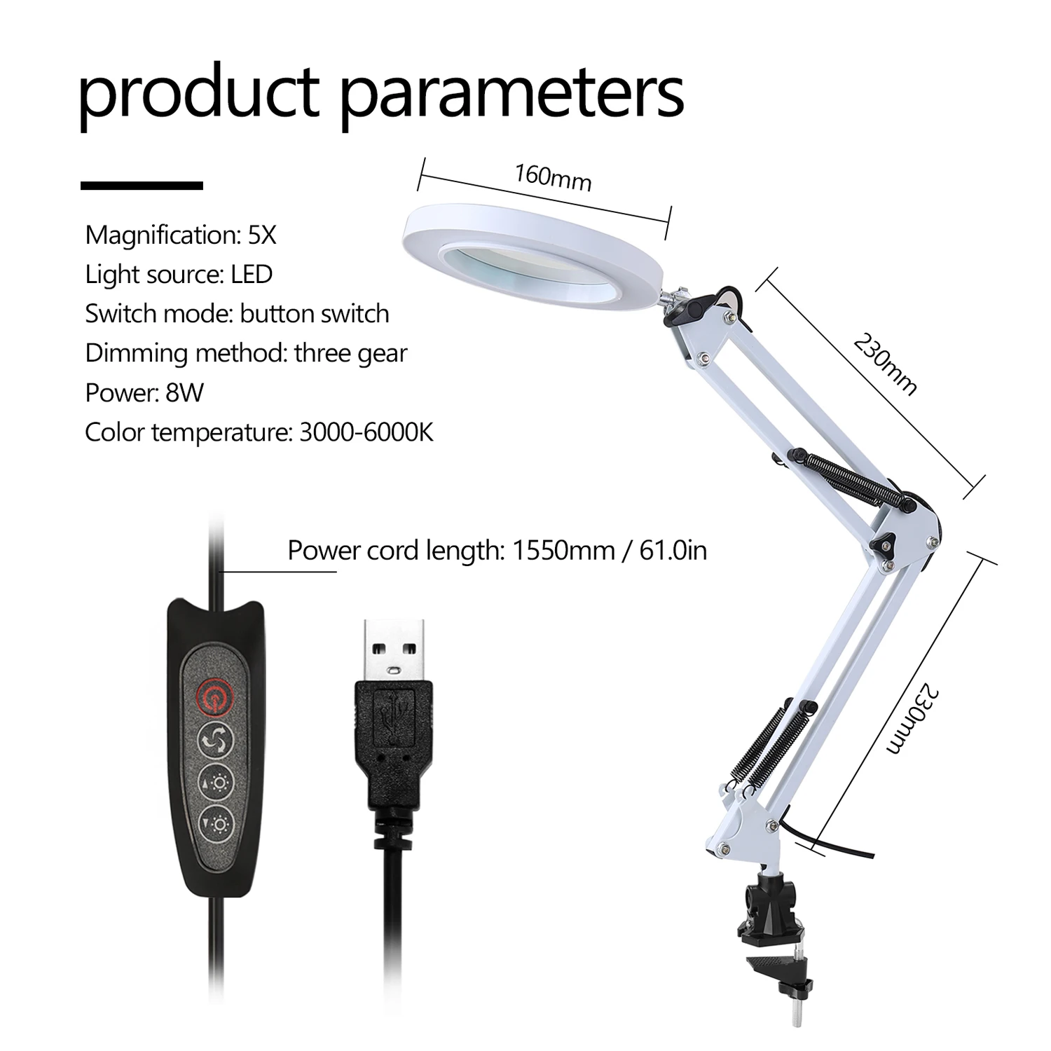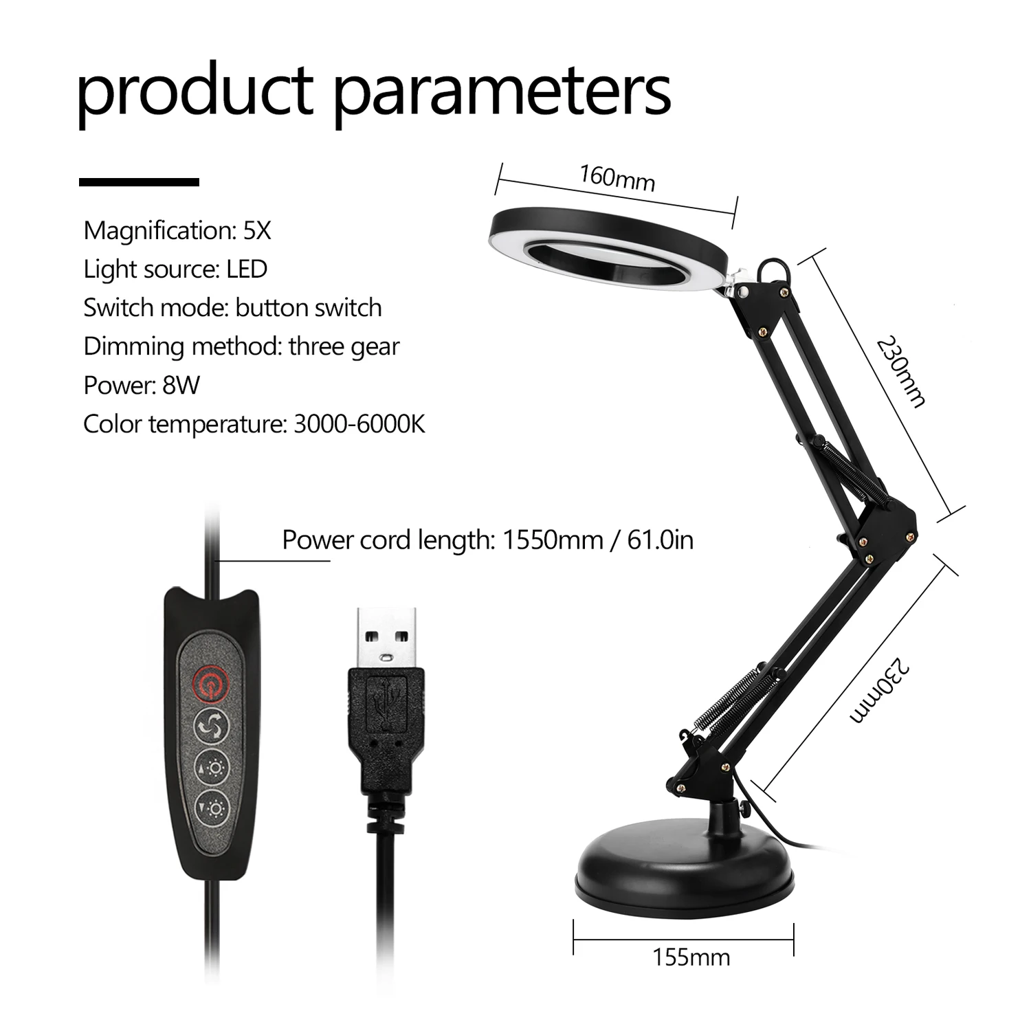 Лупа лампы с 5X увеличениями, может использоваться в офисах, школах, лабораториях, столе, спальне и т. д., более тщательно и удобно в исследовании и работе.